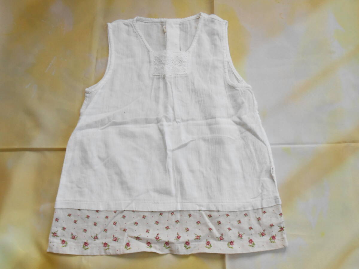 Ka18☆フーセンウサギ ノースリーブチュニック 薄手 白×花プリ 130㎝ 状態良