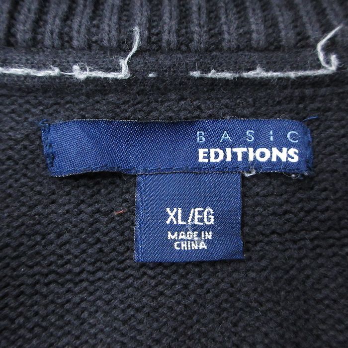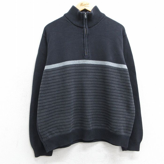 【商品名】 XL★古着 ベーシックエディションズ 長袖 ハーフジップ セーター メンズ コットン 黒他
