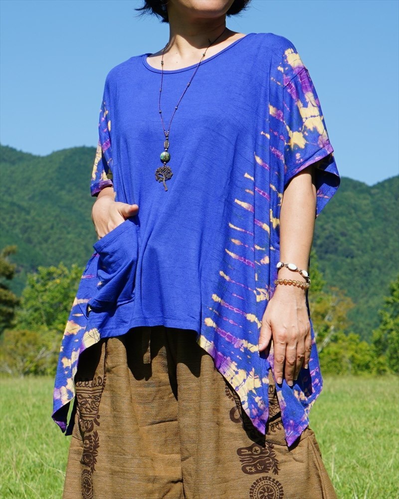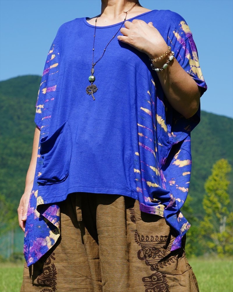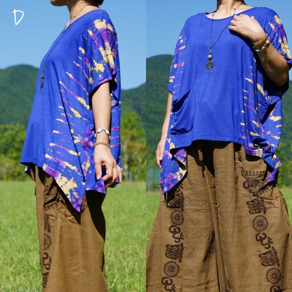 ★エスニック タイダイ ドルマントップス てろてろ素材★送料込新品D★アジアン シンプルトップス レーヨン素材 ユニセックス