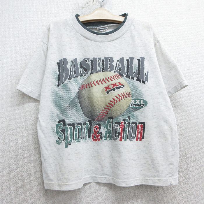【商品名】 古着 半袖 ビンテージ Tシャツ キッズ ボーイズ 子供服 90年代 90s ベースボール クルーネック カナダ製 薄グレー 霜降り