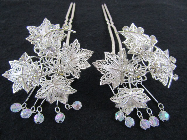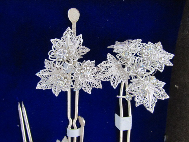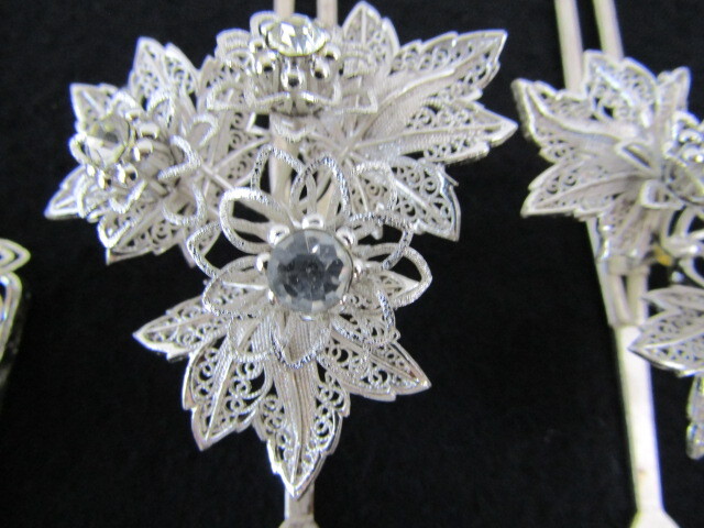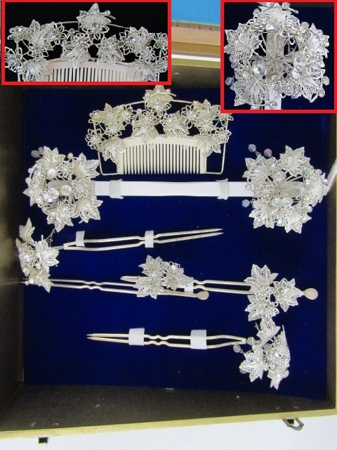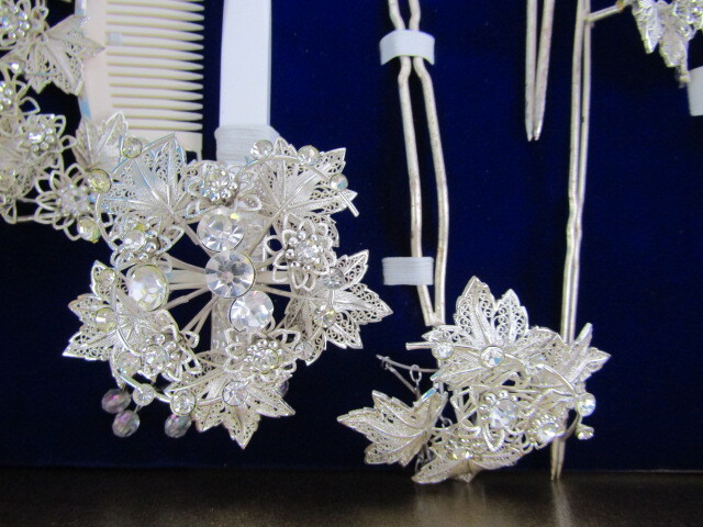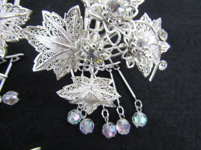 ◇櫛・簪・笄 かんざしセット 舞妓 踊り 花嫁 銀 A 0915-5◇