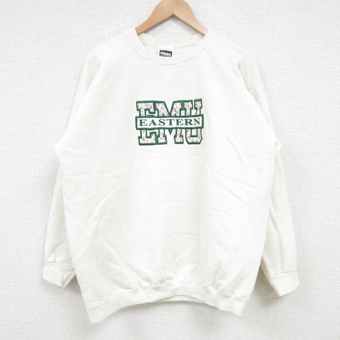 【商品名】 L★古着 TULTEX 長袖 スウェット メンズ 90年代 90s EASTERN 刺繍 クルーネック USA製 白