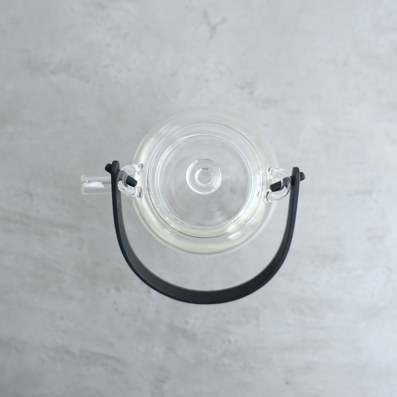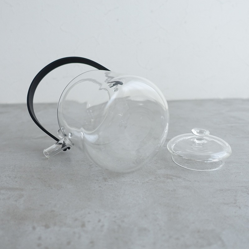 | STUDIO PREPAのガラスティーポットです。カラーはクリアで持ちてがブラックです。 シンプルなデザインでどんな種類のお茶ともよく馴染みます。 |