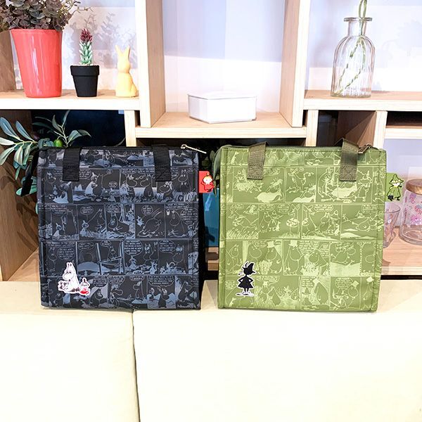 商品説明 | ムーミンの保冷ランチバッグです。お弁当箱と500mlペットボトルを入れても余裕のサイズ。 お買い物時のエコバッグとしても使用できます。 保冷の際は保冷剤(付属しておりません)を入れてご使用ください。ブラックにはミイ、グリーンにはスナフキンのタグが付いています。 |