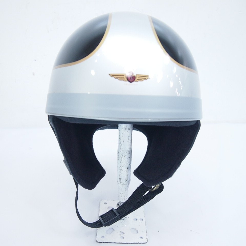 ヤマハ純正のハーフヘルメットです。 こちらのヘルメットはPSCマークありませんので、乗車用ヘルメットとして使用しないでください。 当時物、新品未使用品になります。 滅多に見る事の出来ないヤマハ純正のハーフヘルメットです。 若干フチに巻いてあるテープ部にべたつきが出ておりますが、本体の状態は申し分ないと思います。 内装も保存状態が良く、スポンジの崩れがありません。 奇跡の状態といっても過言ではないかもしれません。 お探しの方、ご活用下さい。 品番 TD-5 G1 製造年月 9.12.11 サイズ フリーサイズ 57-60cm |
