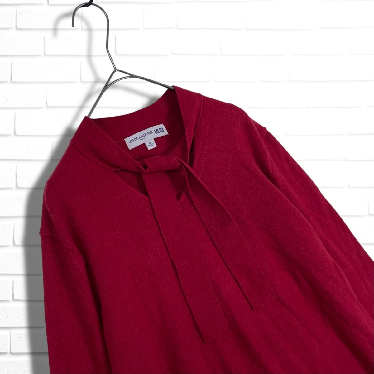 美品 UNIQLO × INES DE LA FRESSANGE ユニクロ イネス コラボ カシミヤ 100% ニット ボウタイ 長袖 セーター 赤 レディース XL LL 2535I◇
