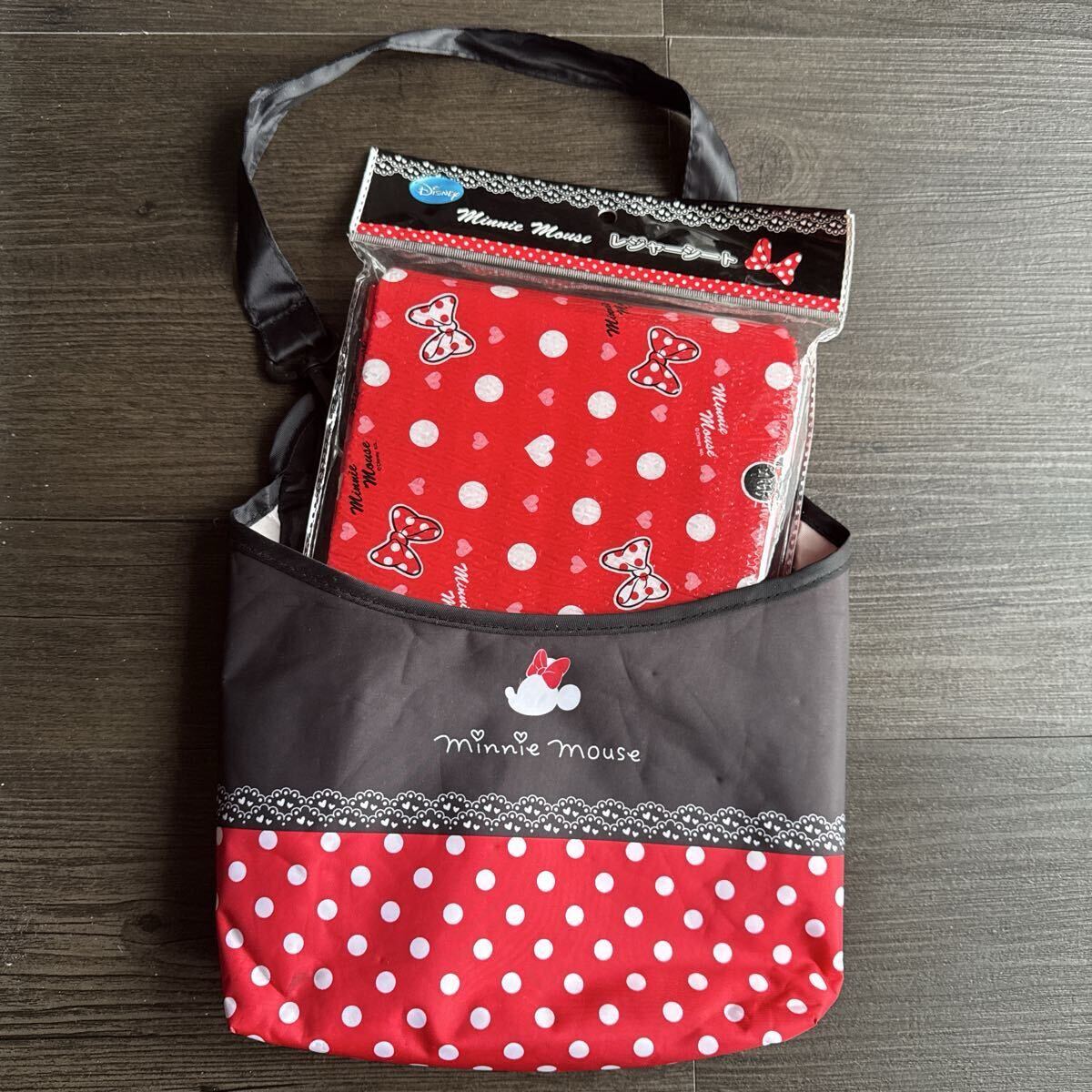 ミニーマウスのレジャーシートとレジャーシートを入れるバックのセットです。