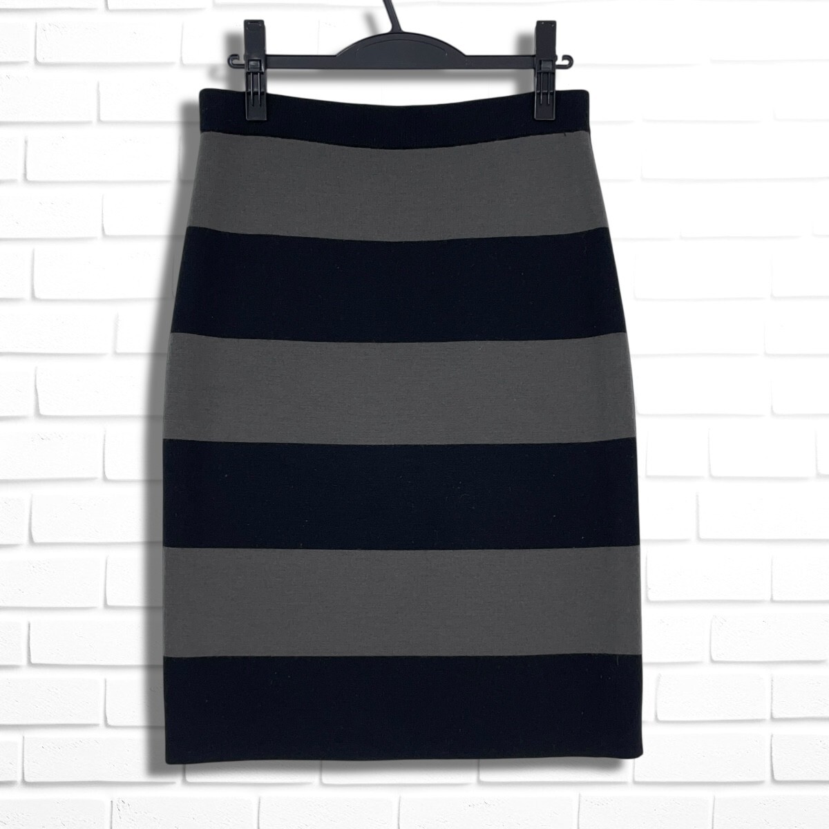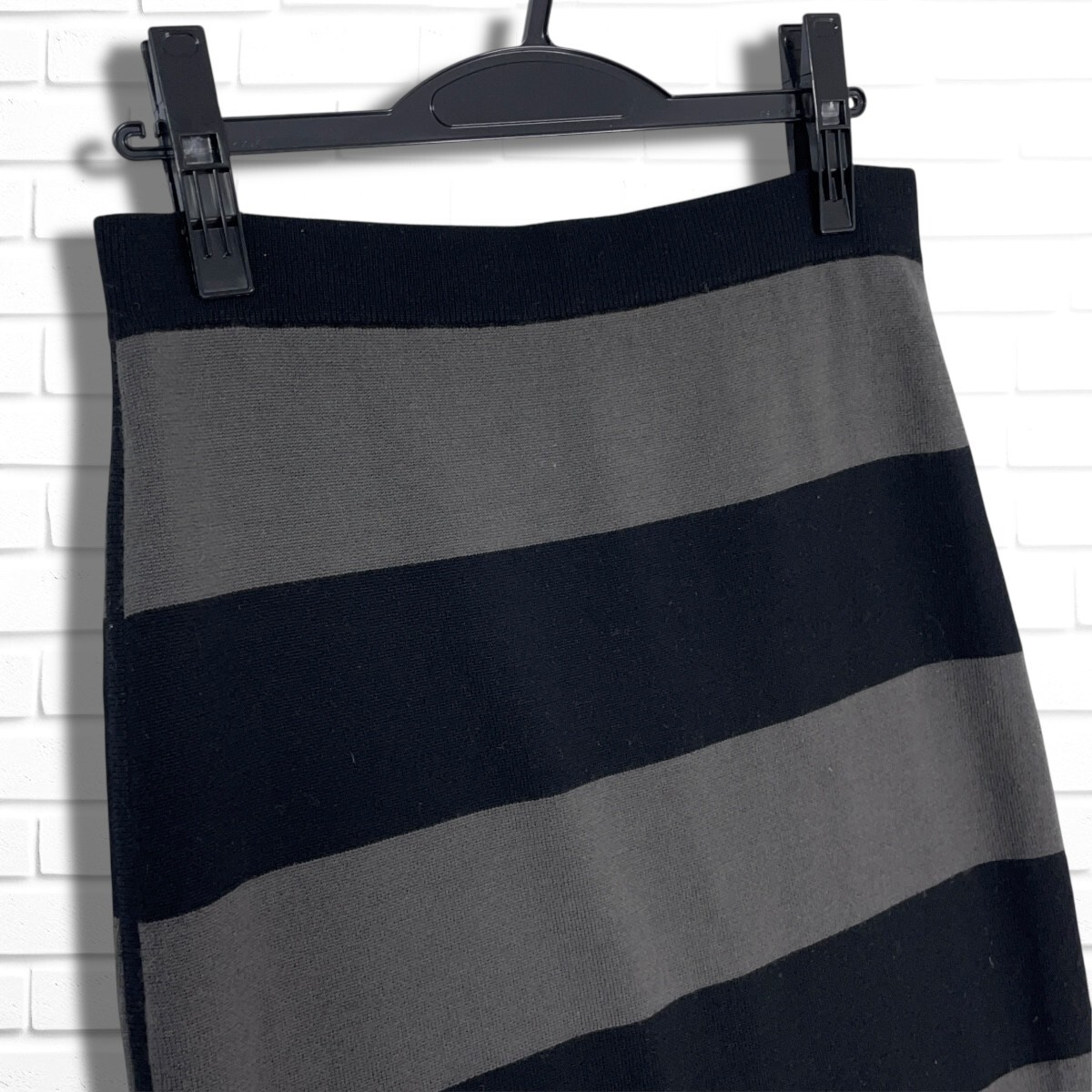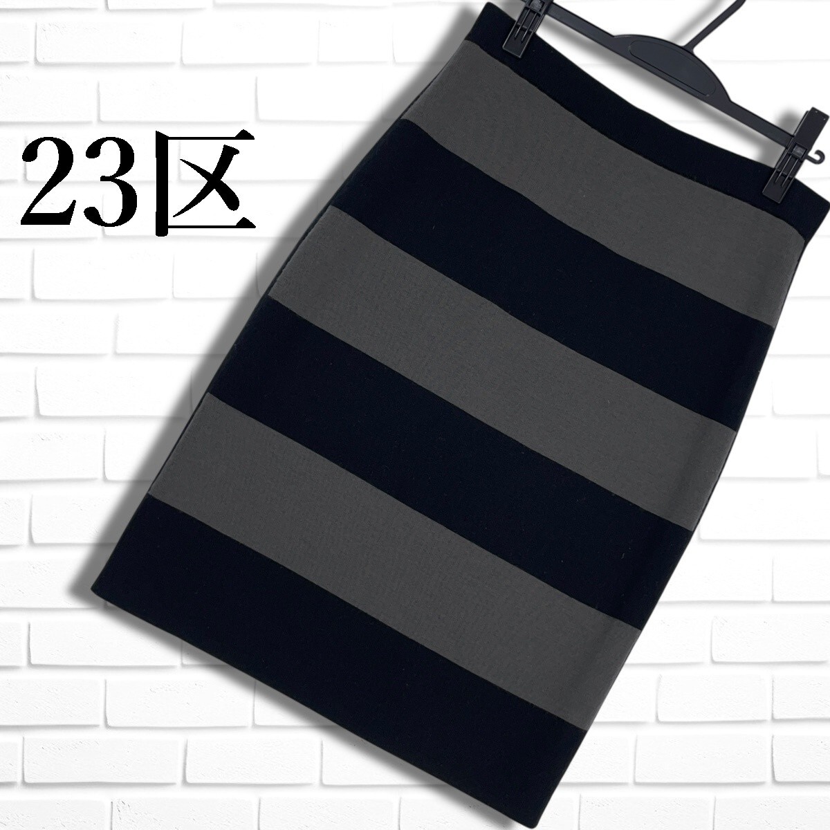 ◆良品◆ 23区 ウール ニット ボーダー イージー スカート 黒 × グレー ブラック レディース 40 L ◆送料無料◆ 2495I◇