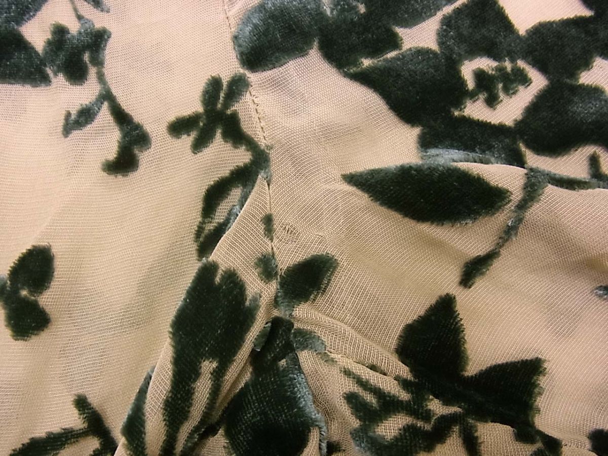 備考透け感のある軽やかな生地に、まるでベルベットを思わせる立体的な花柄フロッキープリントを施したデザイン。