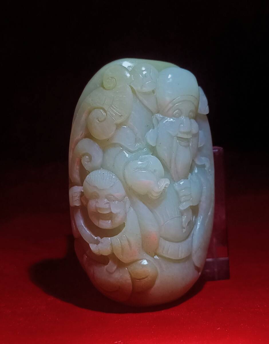 | 寸法:高さ約8cm、幅さ約5cm、重さ約194g 状態:目立った傷や汚れなし 【インボイス登録済】 商品紹介:玉質は温潤で、沁色は自然で、刀功は老道、彫刻は生き生きとして、線は滑らかで、品相図。 | ||