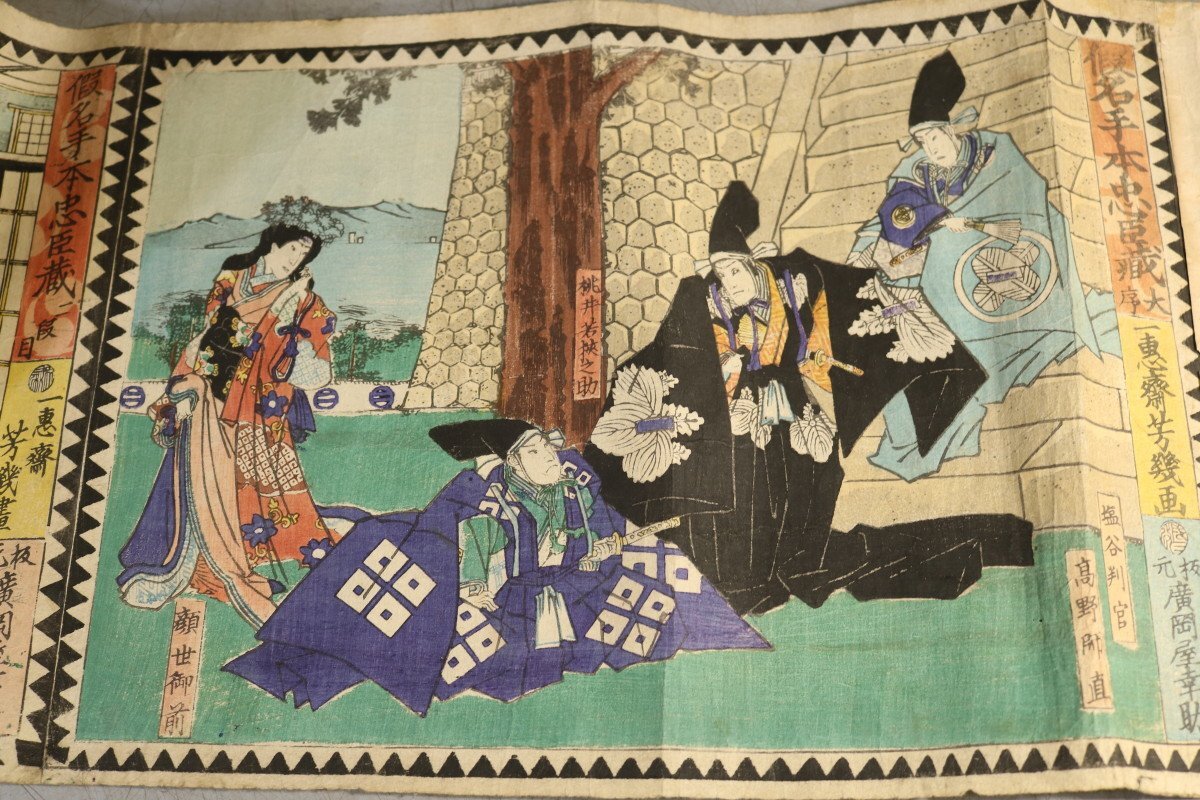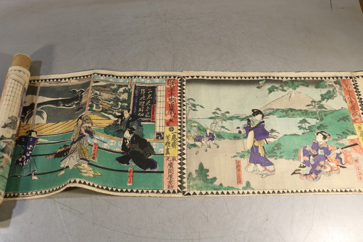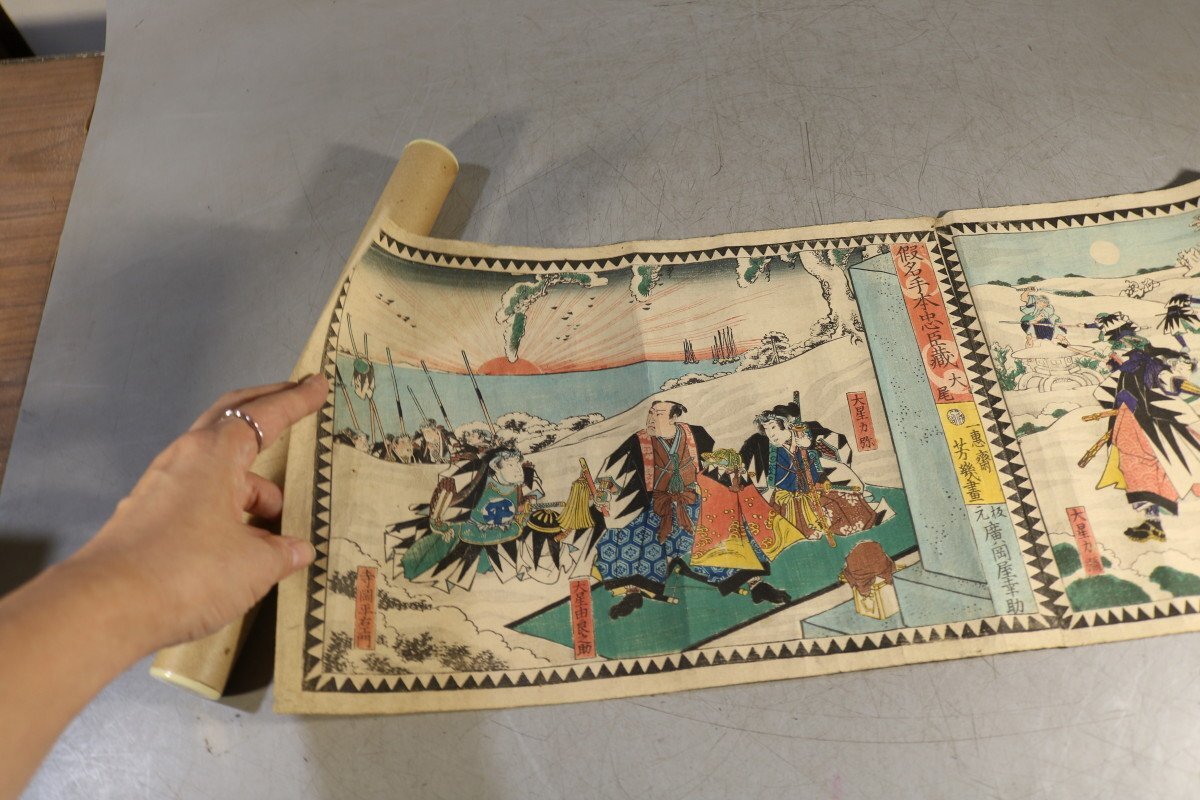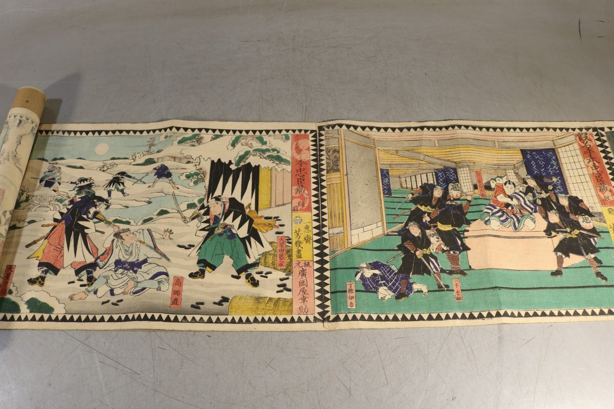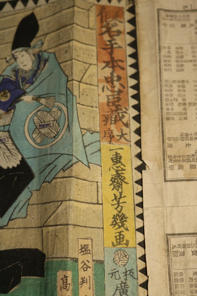 E281 木版画 一恵斎芳幾 浮世絵木版画 【仮名手本忠臣蔵】12枚繋がってる 54745