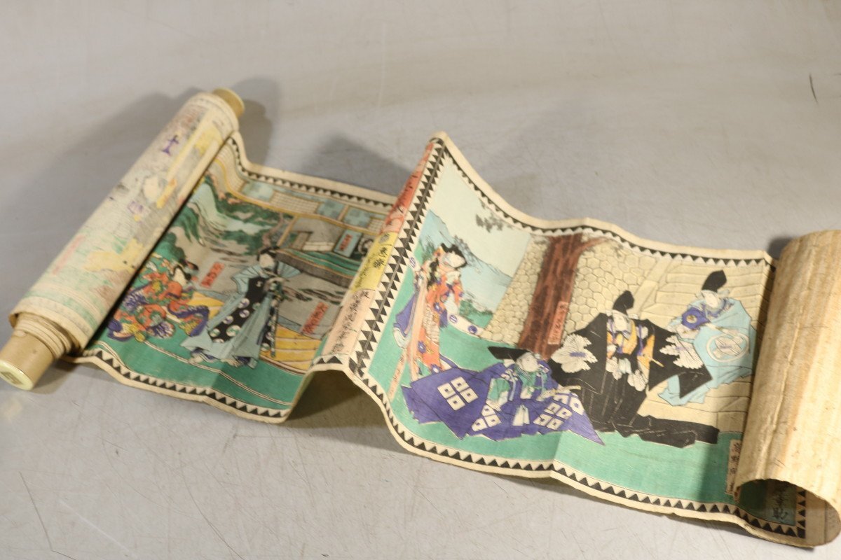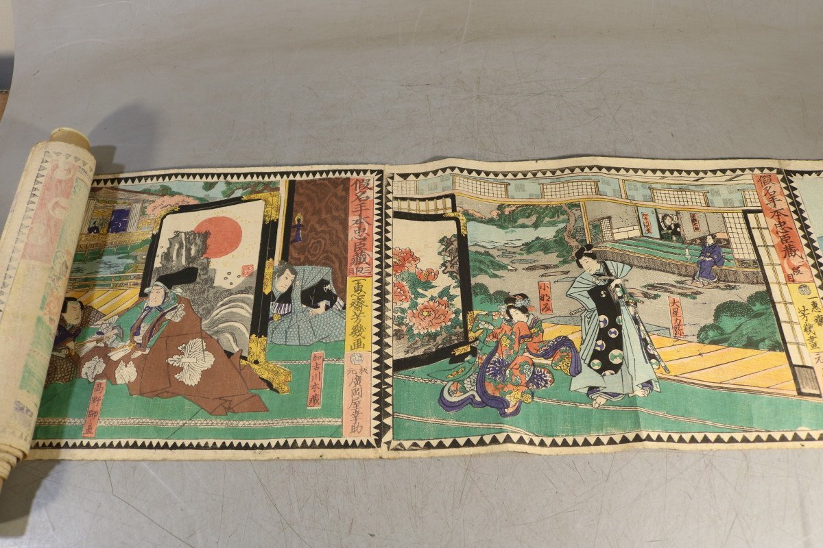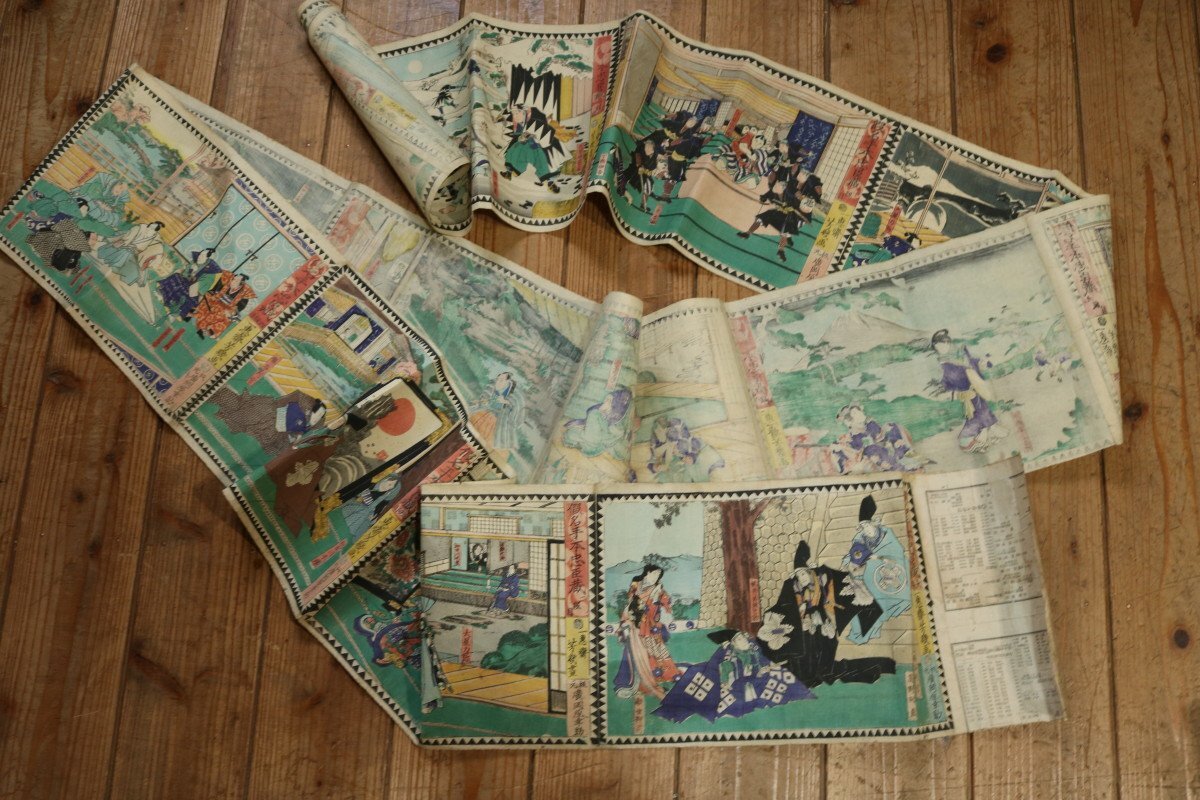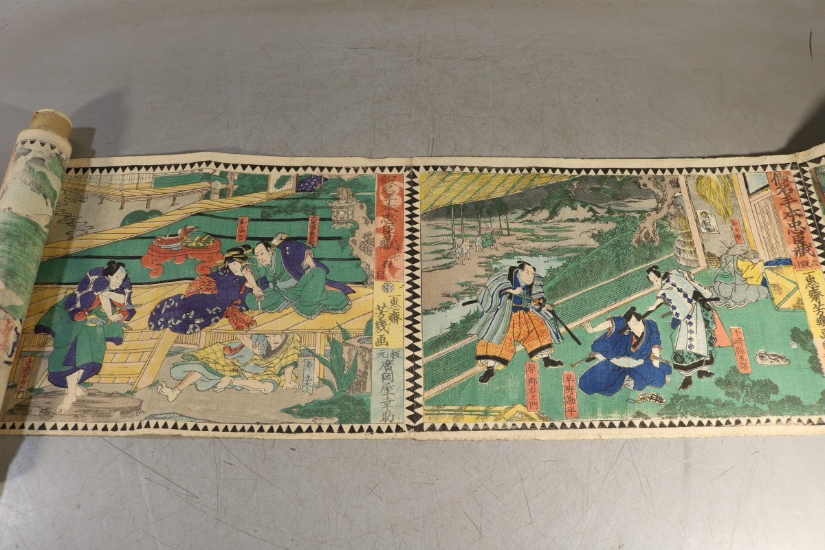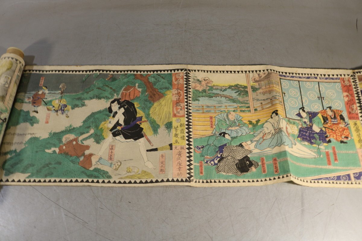 E281 木版画 一恵斎芳幾 浮世絵木版画 【仮名手本忠臣蔵】12枚繋がってる 54745