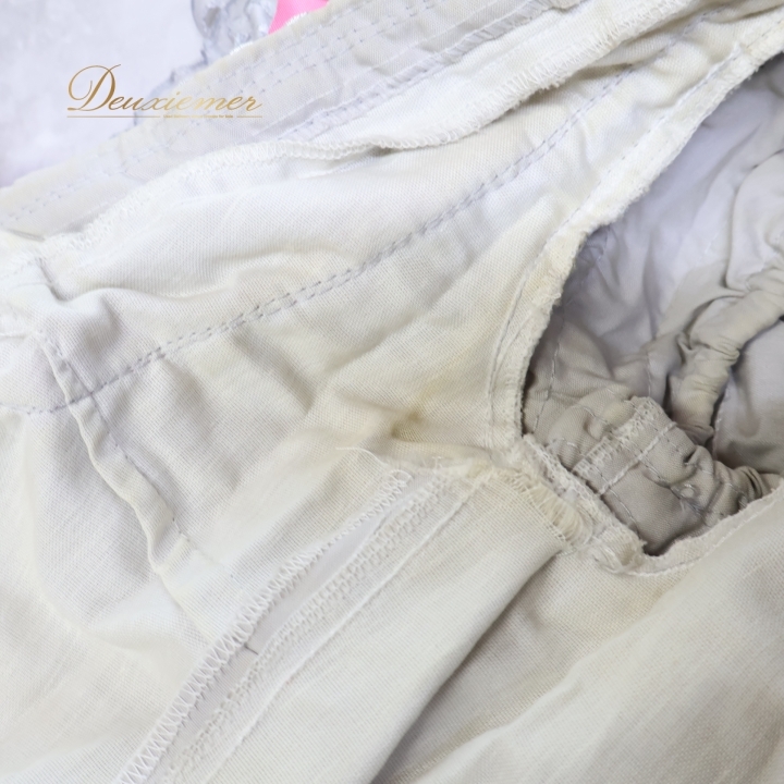 | 収納におい御座います。 正面や裾等薄くシミ箇所数か所見受けられました。 内側、首回り、袖口黄ばみ御座います。 背面リボン切りっぱなしほつれ御座います。 使用品となりますので、小傷、擦り傷、小汚れなどはご了承ください。 モニターの発色により実際と異なる場合があります。 |
