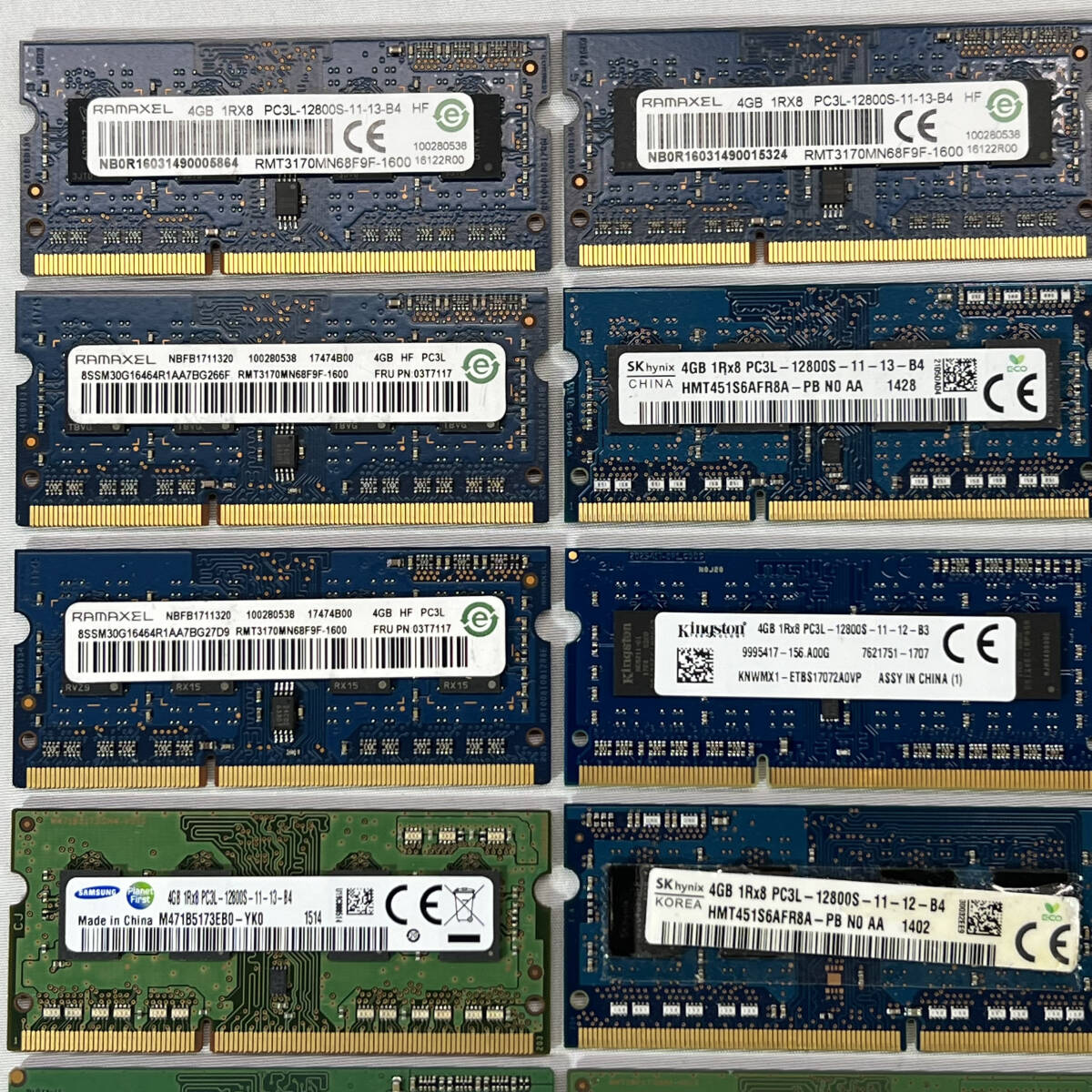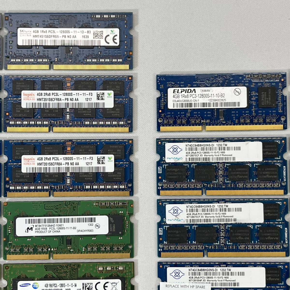 □ PC メモリ ノートPC用 4GB まとめて 38枚 PC3L-12800S PC3L-14900S PC3-12800S SAMSUNG SK hynix ELPIDA RAMAXEL 等 DDR3 □ W01-0917 |