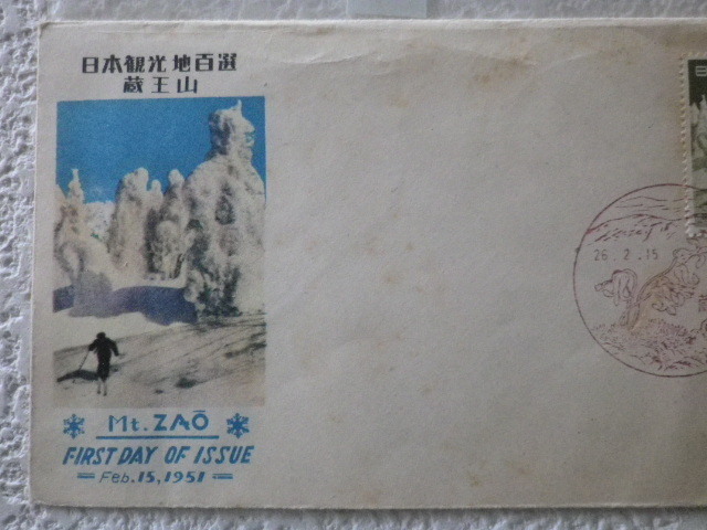 FDC 観光地百選 蔵王山8円 1951年 1貼1消 解説書無●94●同梱大歓迎