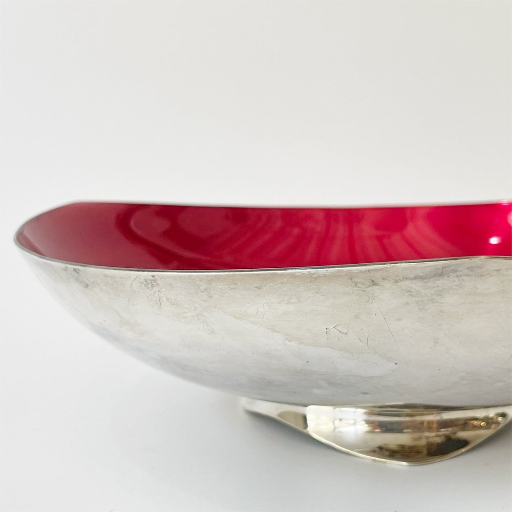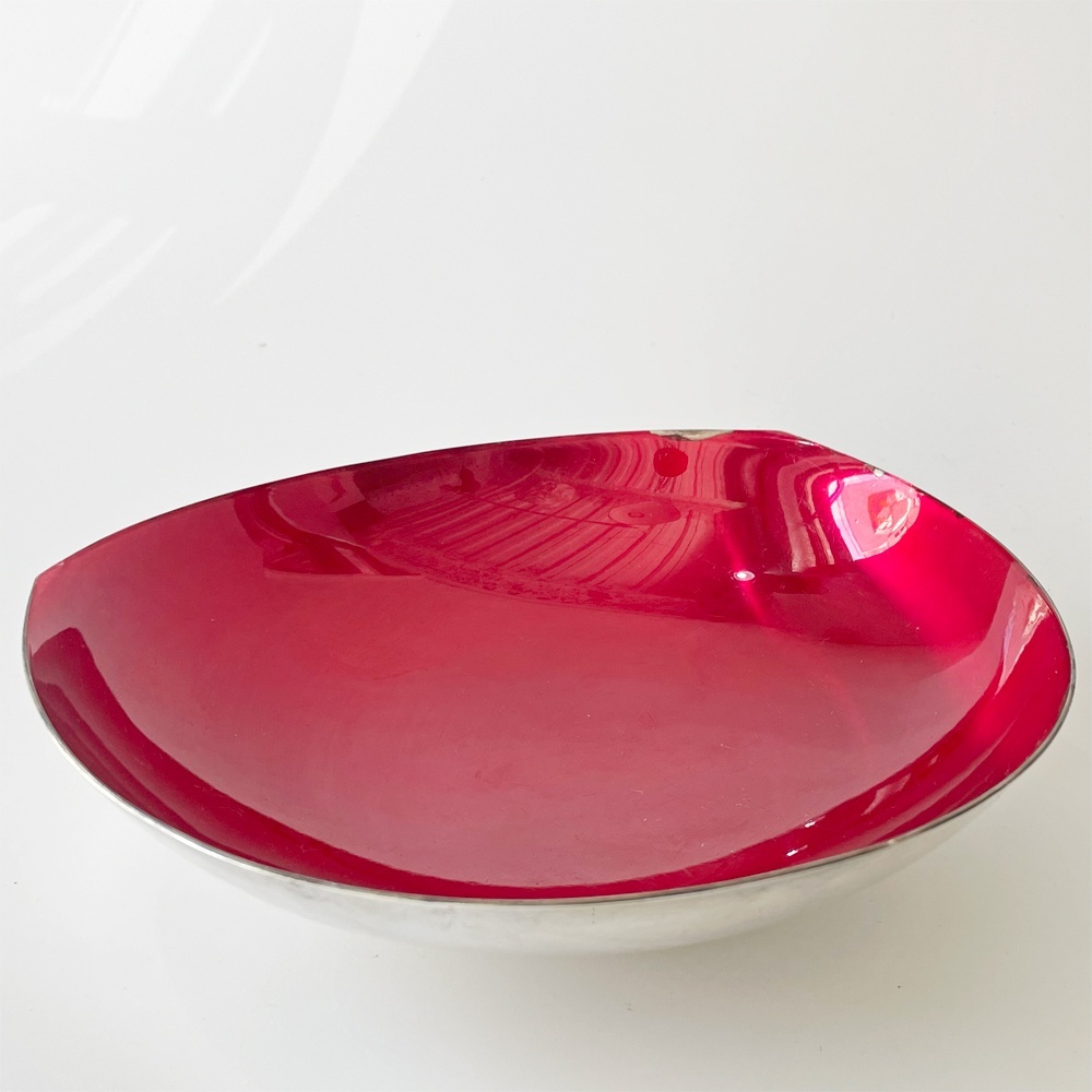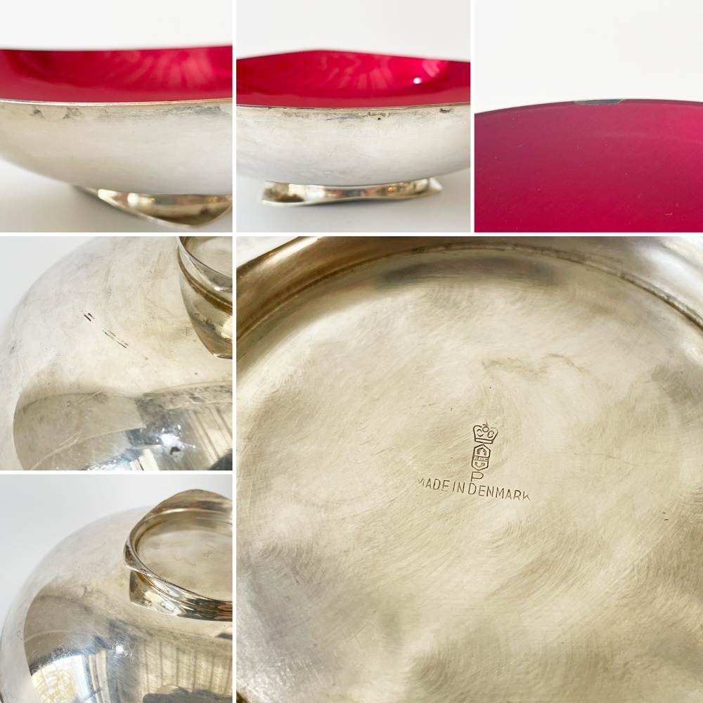 | コメント | 1950年代から60年代にかけて活躍したデンマークのデザイナー、"カール・クリスチャンセン/Carl Christiansen"。 銀メッキのキャンドルホルダーなど、北欧でのミッドセンチュリーデザインを牽引した一人です。 こちらはシルバーの外見のなかにエナメルのカラーリングが輝かしいボウルとなります。 大きすぎず、小さすぎずの絶妙なサイズ感で使いどころが多そうな一枚。 曲線が多用された唯一無二のフォルムはアート性もあり、オブジェとして飾ったり、アクセサリー入れとしての仕様もおすすめです。 ※当ショップは、主にリサイクル品を取り扱っております。基本的にUSED品である事をご理解頂き、ご入札をご検討下さいませ。 |