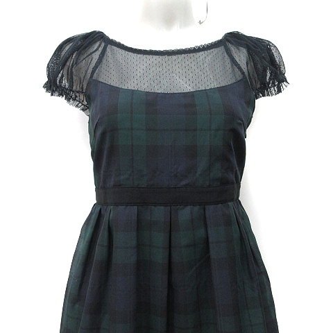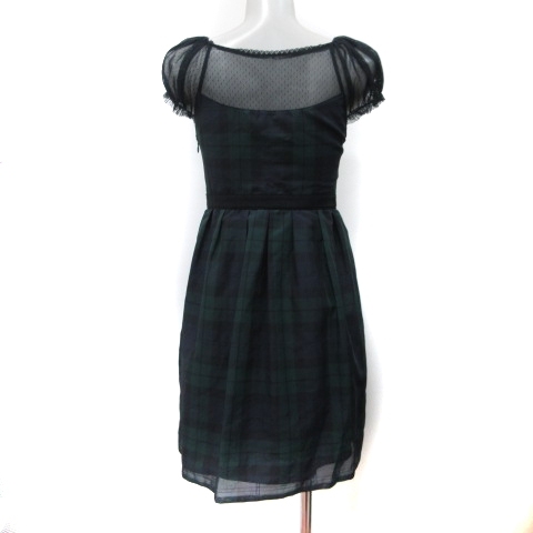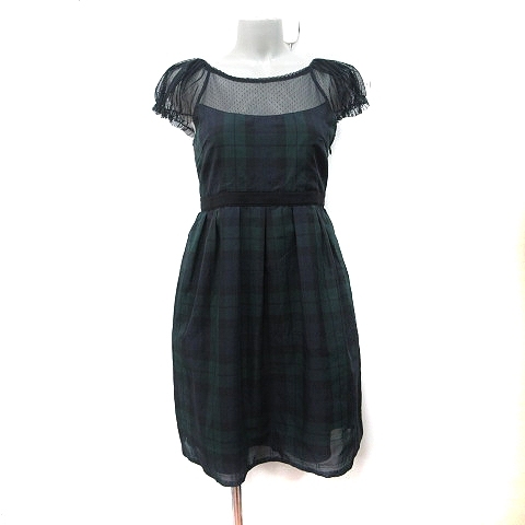 ジルスチュアート JILL STUART ワンピース ミニ フレンチスリーブ 切替 チュール チェック 0 XS 黒 ブラック 緑 グリーン /YI レディース