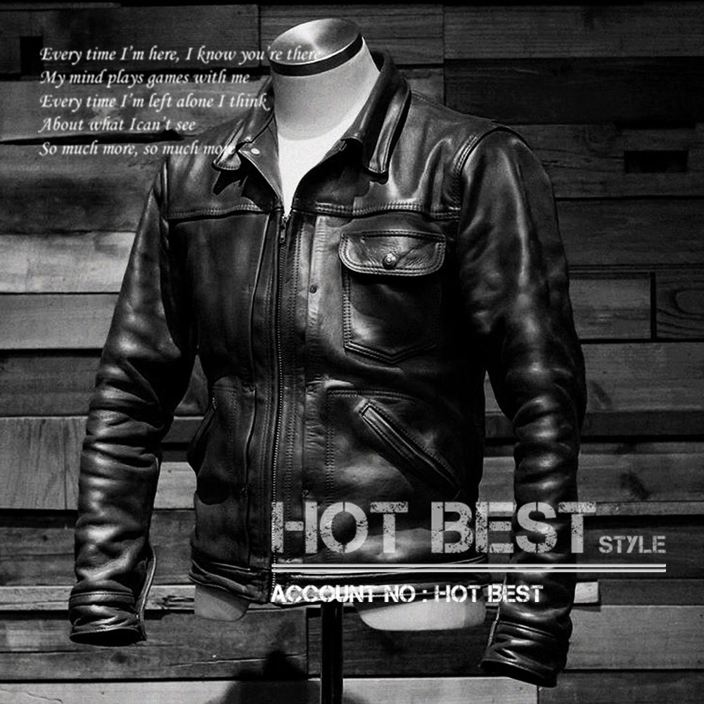 最上級カウハイド ECCO LEATHER Gジャンタイプ ライダース 革ジャン イタリアンレザージャケット 牛革【XXXL】CAB540