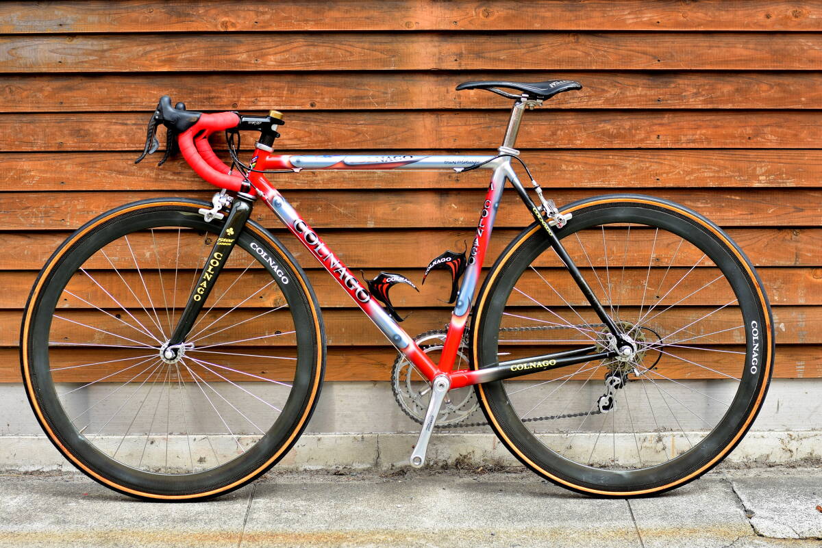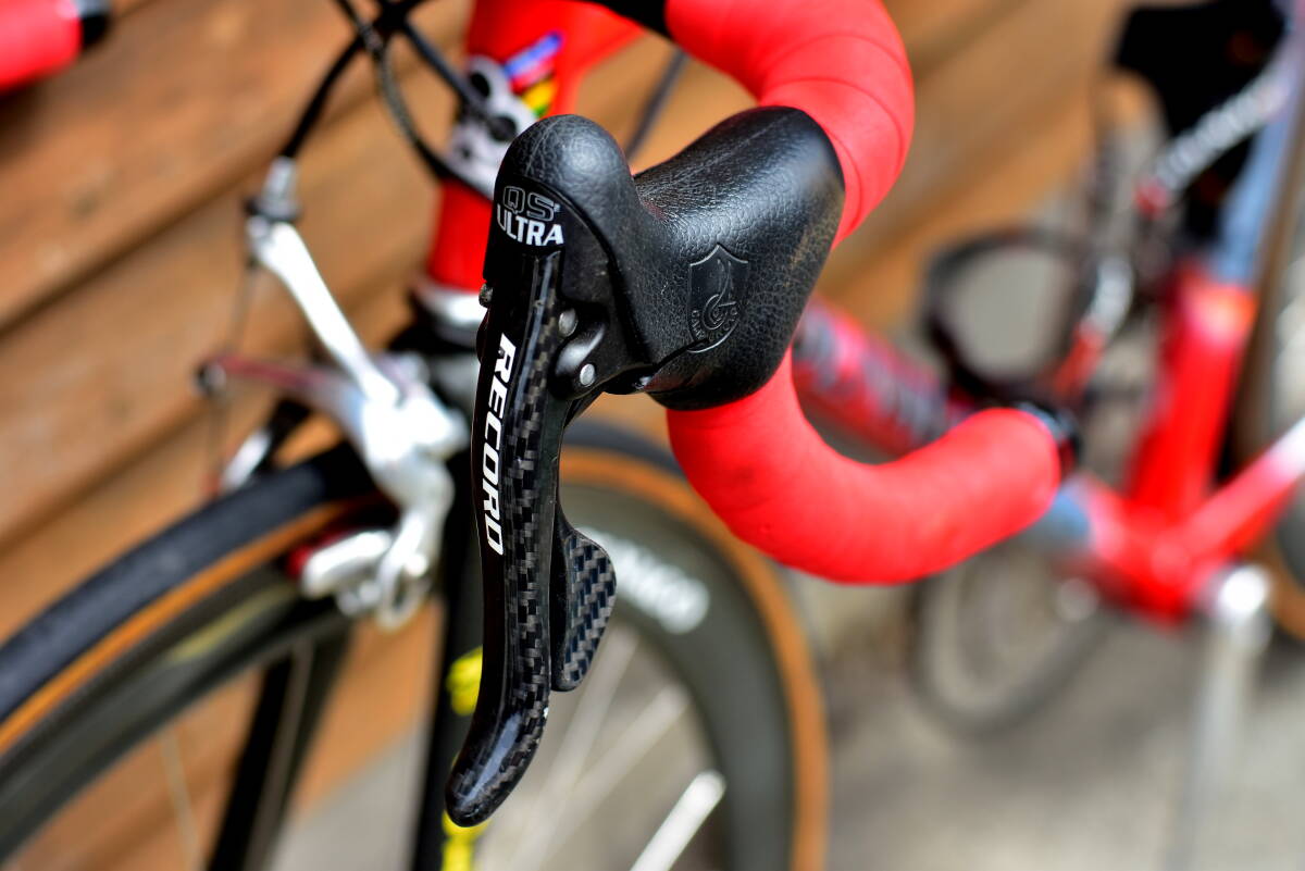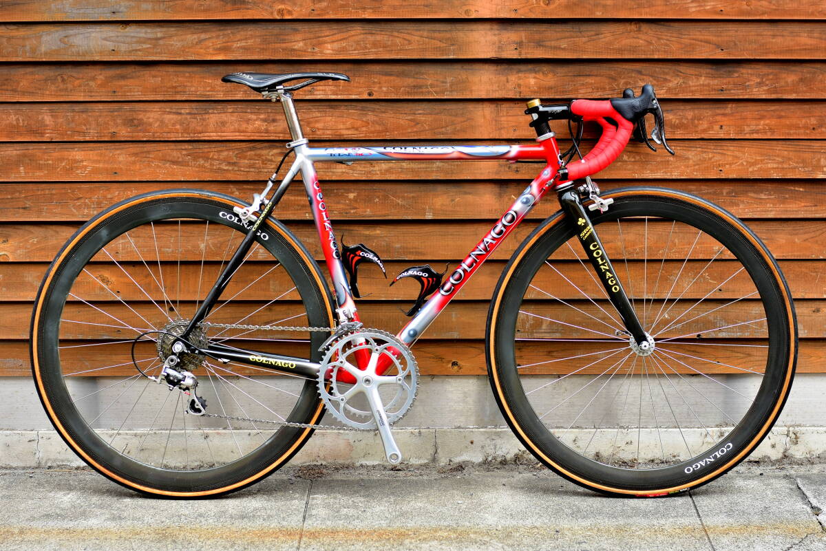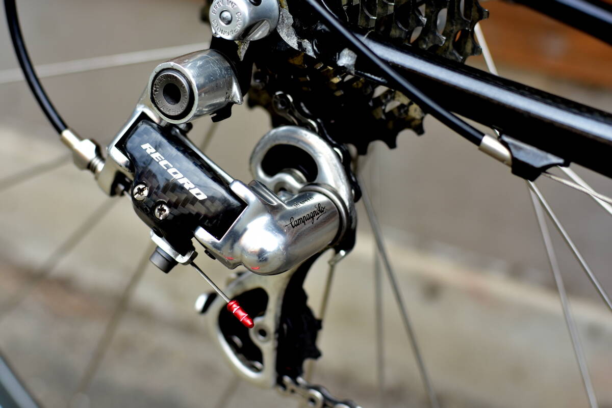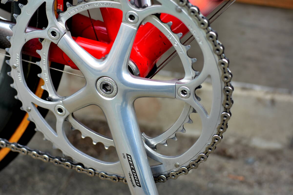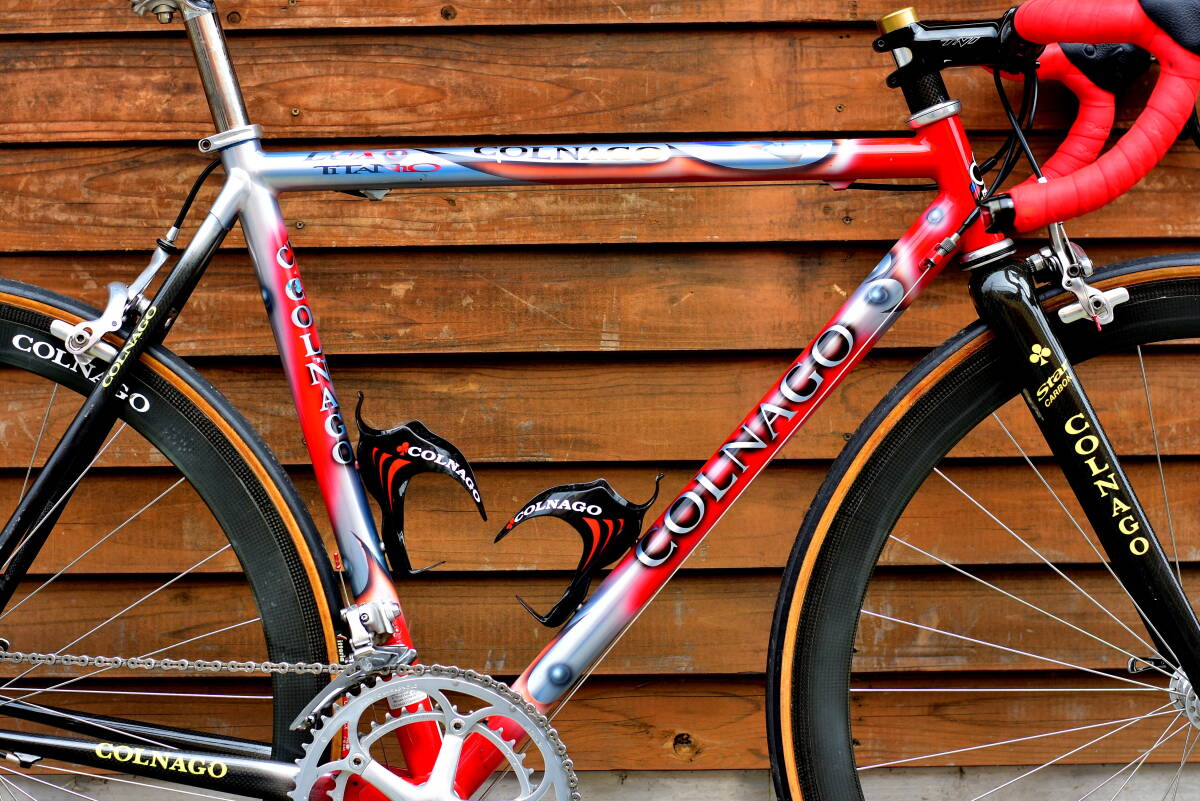 フレーム:BIANCHI トップチューブC-C 520 シートチューブ C-C 500 ヘッド:Campagnolo Record ハンドル:3ttt シートポスト:Campagnolo Titanium サドル:Selle Italia SLR 120g クランク:Campagnolo Record 39t.52t フロント・ディレイラー:Campagnolo Record 2s リア・ディレイラー:Campagnolo Record 10s エルゴパワー:Campagnolo Record 10s ブレーキキャリパー:Campagnolo Record ハブ:Campagnolo リム:CARBON (Tu) |