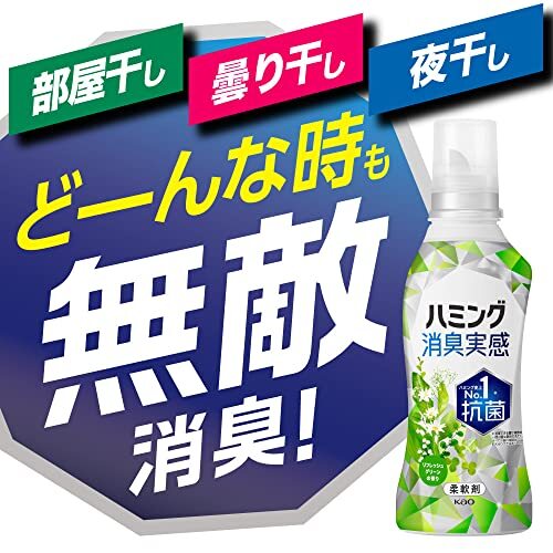 | 商品名 | ハミング消臭実感 柔軟剤 部屋干し/曇り干し/夜干しどーんな時も無敵消臭! リフレッシュグリーンの香り |