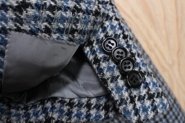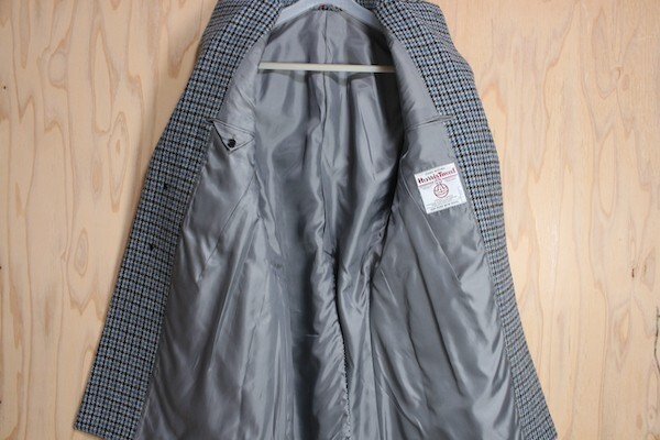 しっかりとした厚手のハリス ツイード生地を使用した本切羽、AMFステッチ等同価格帯でもかなりの拘りのある仕様で作られた日本製の型見本のコートです。