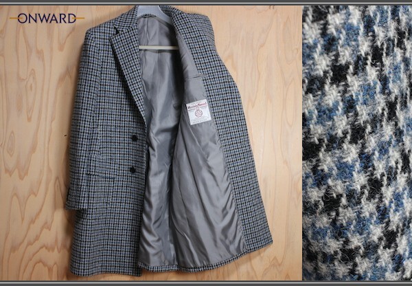 新品 伊勢丹メンズ Shigeaki Naoi 秋冬 日本製 Harris Tweed/ハリス ツイード チェスター コート 48/L/A6-AB6/青黒白/17万/オンワード樫山