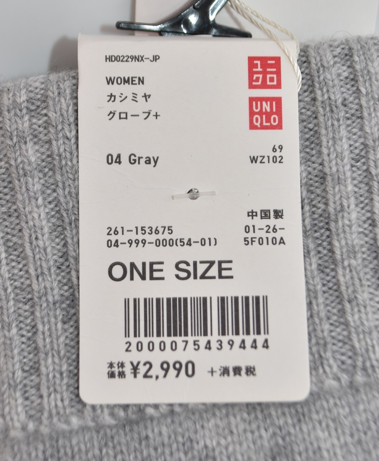 【未使用・長期保管品】婦人用カシミヤグローブ Gray(ユニクロ HD00229NX-JP) |