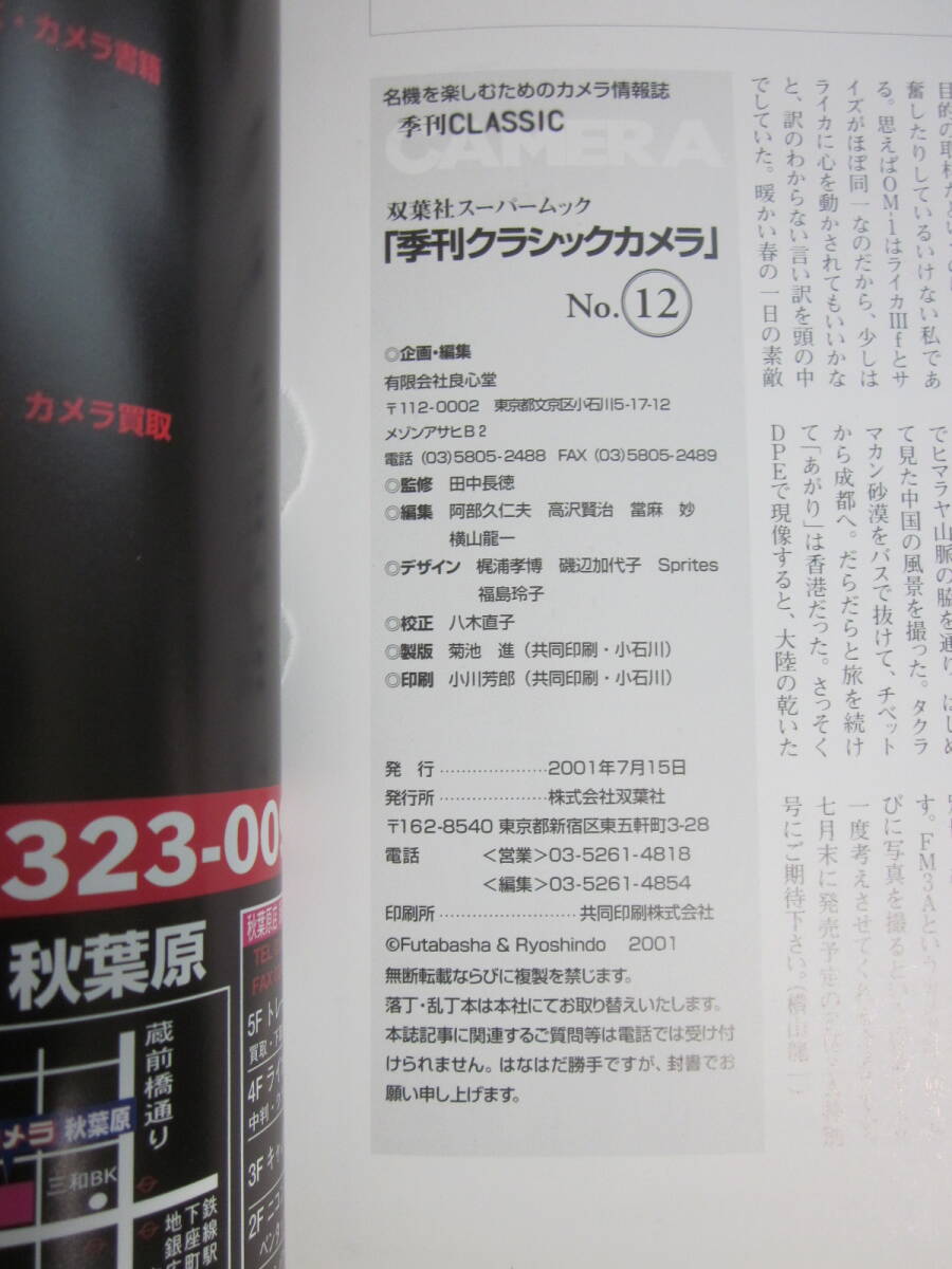 季刊クラシックカメラ No.12 特集●小さな巨人オリンパス・ズイコーの輝き 高千穂光学の時代から培った光学技術とテクノロジー 田中長徳 地汚れ、角折れ有 | |||