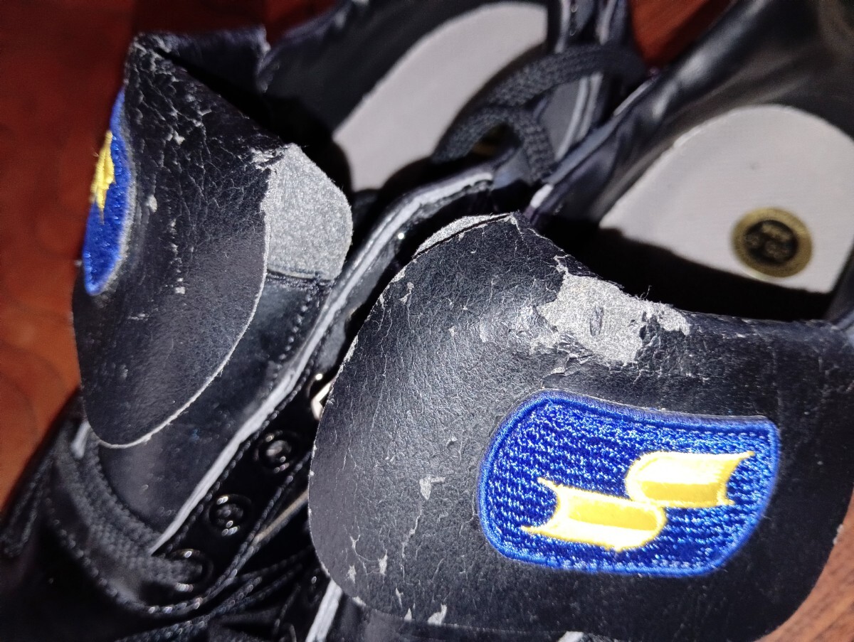 ※長期保管中に出来た、剥がれ(写真7、8参照)、スパイクの底にヒビ割れ(写真9参照)があります。