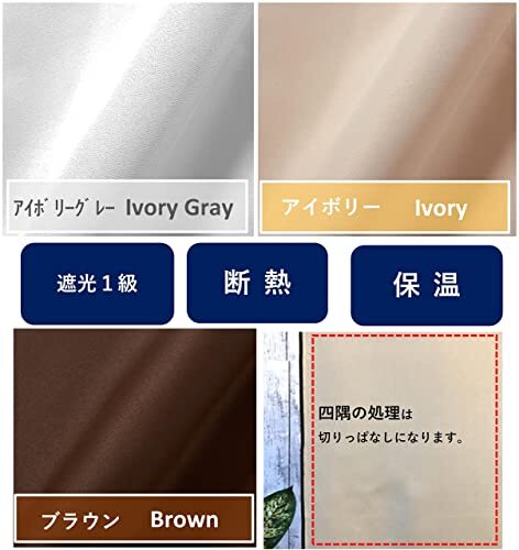 | 商品説明 | 【商品特徴】 ブラウン [遮光1級] 生地幅約150cm x 長さ約1.0mでカットした生地の切り売りとなります。生地の両端・上下 カット位置は切りっぱなしの状態となります。詳しくはサブ画像をご確認ください。 【生地特徴】 遮光1級生地(遮光率99.99%)を使用。夏場の断熱効果(44.5%,10.5℃)冬場の保温効果(32.8%,4.5℃)。 【注意事項】遮光1級生地でも、西日などの強い光の場合、光が漏れる場合がございます。生地種類により遮光の度合いが異なります(遮光1級>ブライト防炎・遮光1級)。また、色により光の透け方が異なり、濃色ほど透けづらくなります。