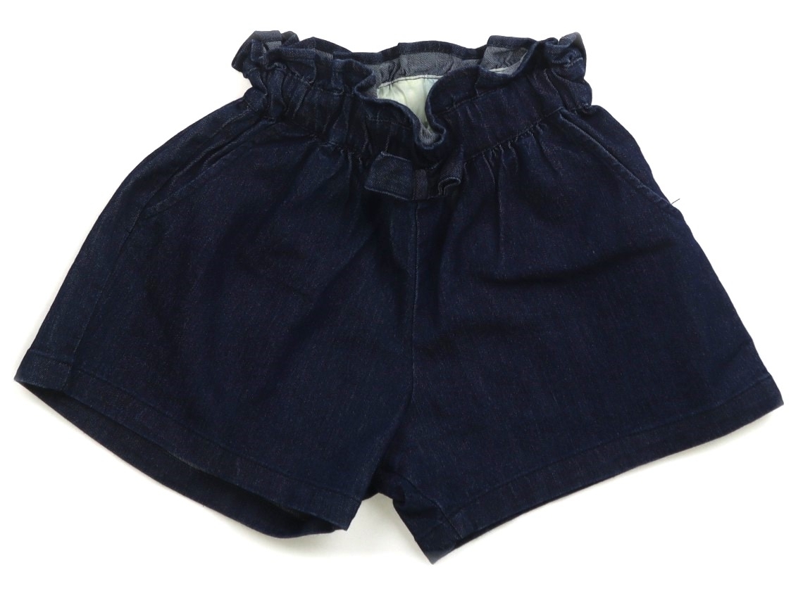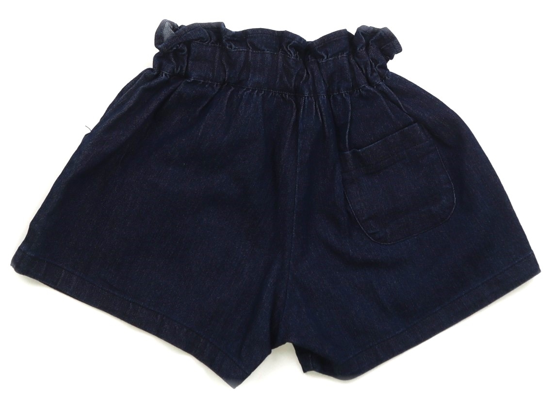 ダンガリー地で、ウエストは総ゴムです。内側のウエスト部分に色移りあり・リボン下に2cm程度の白っぽいシミあり。