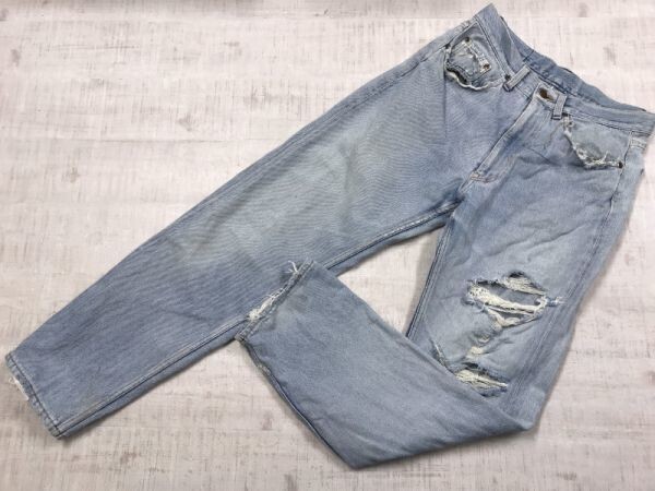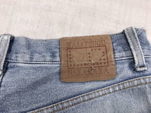 MASATSUGU NAKAHARA ストリート モード グランジ クラッシュ加工 テーパード デニムパンツ ジーンズ ボトムス メンズ ジップフライ M 青