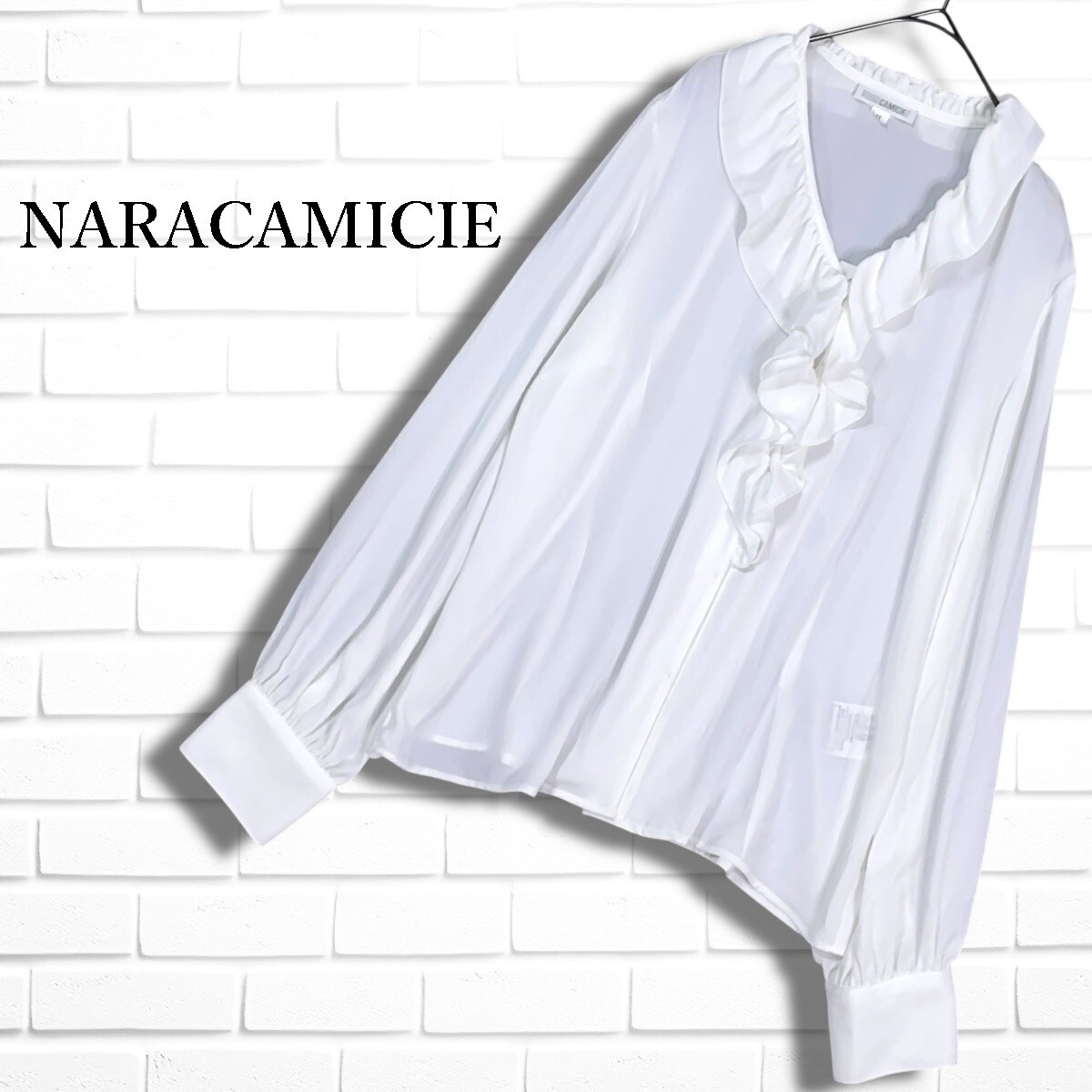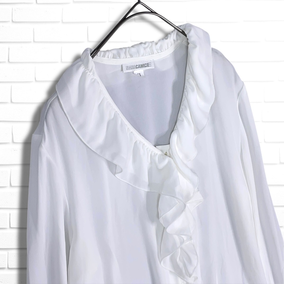 ◆良品◆ NARACAMICIE ナラカミーチェ フリル 長袖 シャツ ブラウス 白 ホワイト レディース 2 (L) ◆送料無料◆ 2135I□