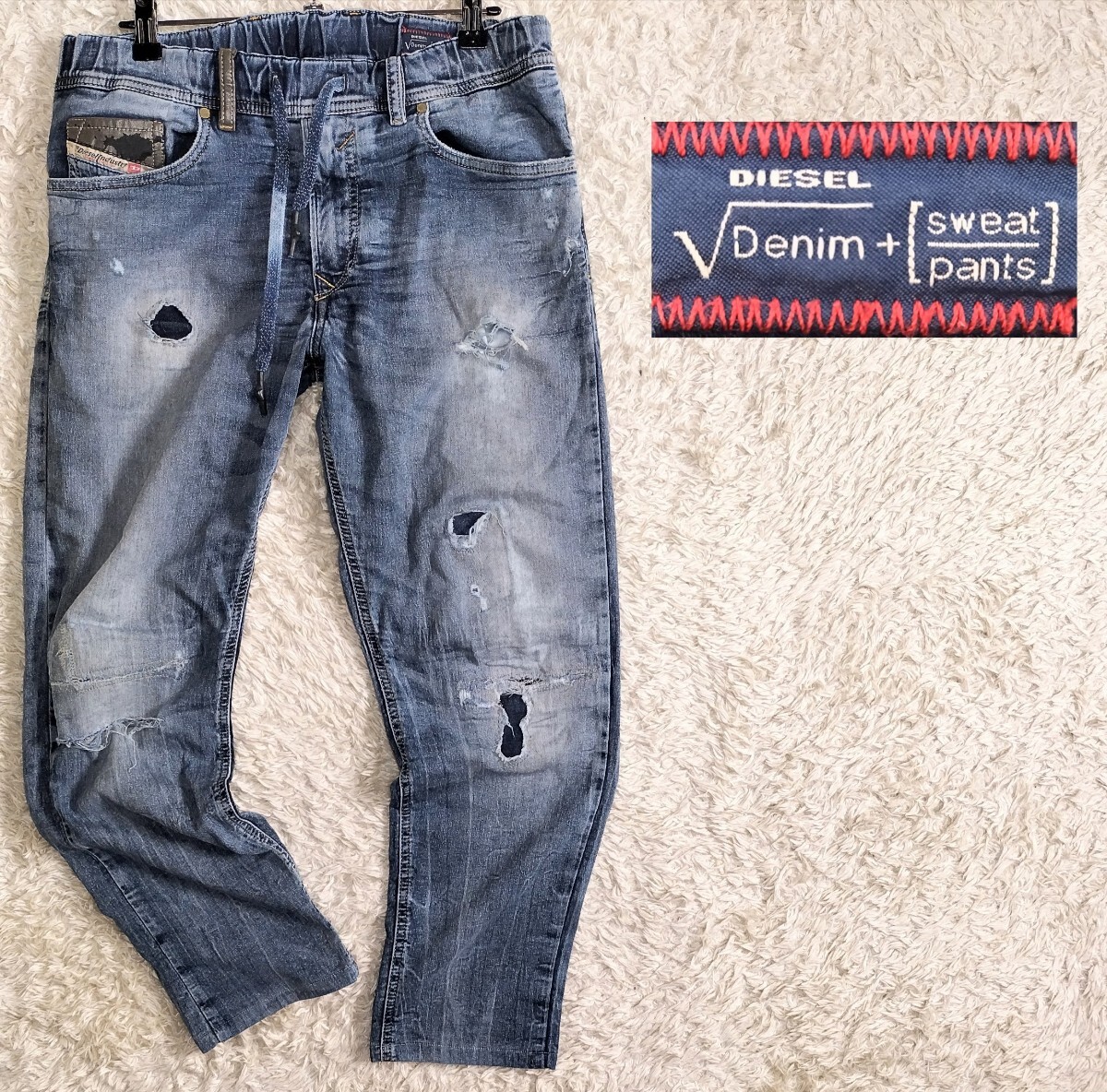 【股下64cm】W28 DIESEL ダメージ加工 スウェットデニムパンツ/ジョグジーンズ◆WAYKEE☆ディーゼル (9)