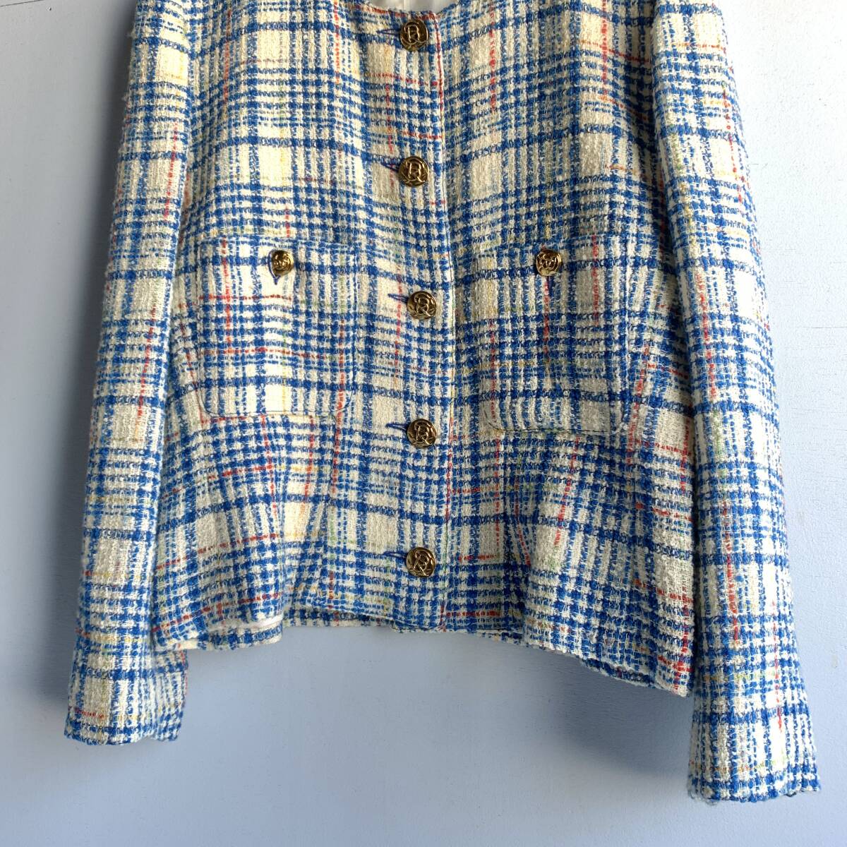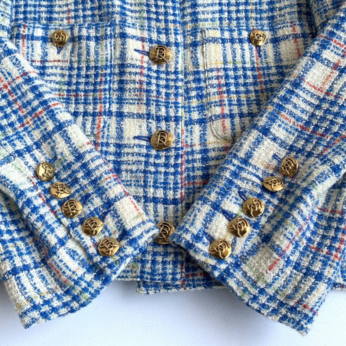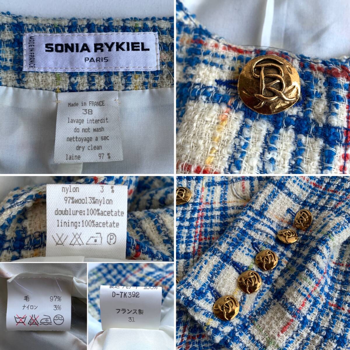 ☆希少 SONIA RYKIEL ソニアリキエル Vintage フランス製 チェック ツイードノーカラージャケット 金ボタン size38【送料一律/同梱可能】Iの出品です。