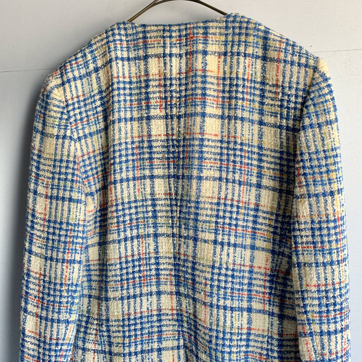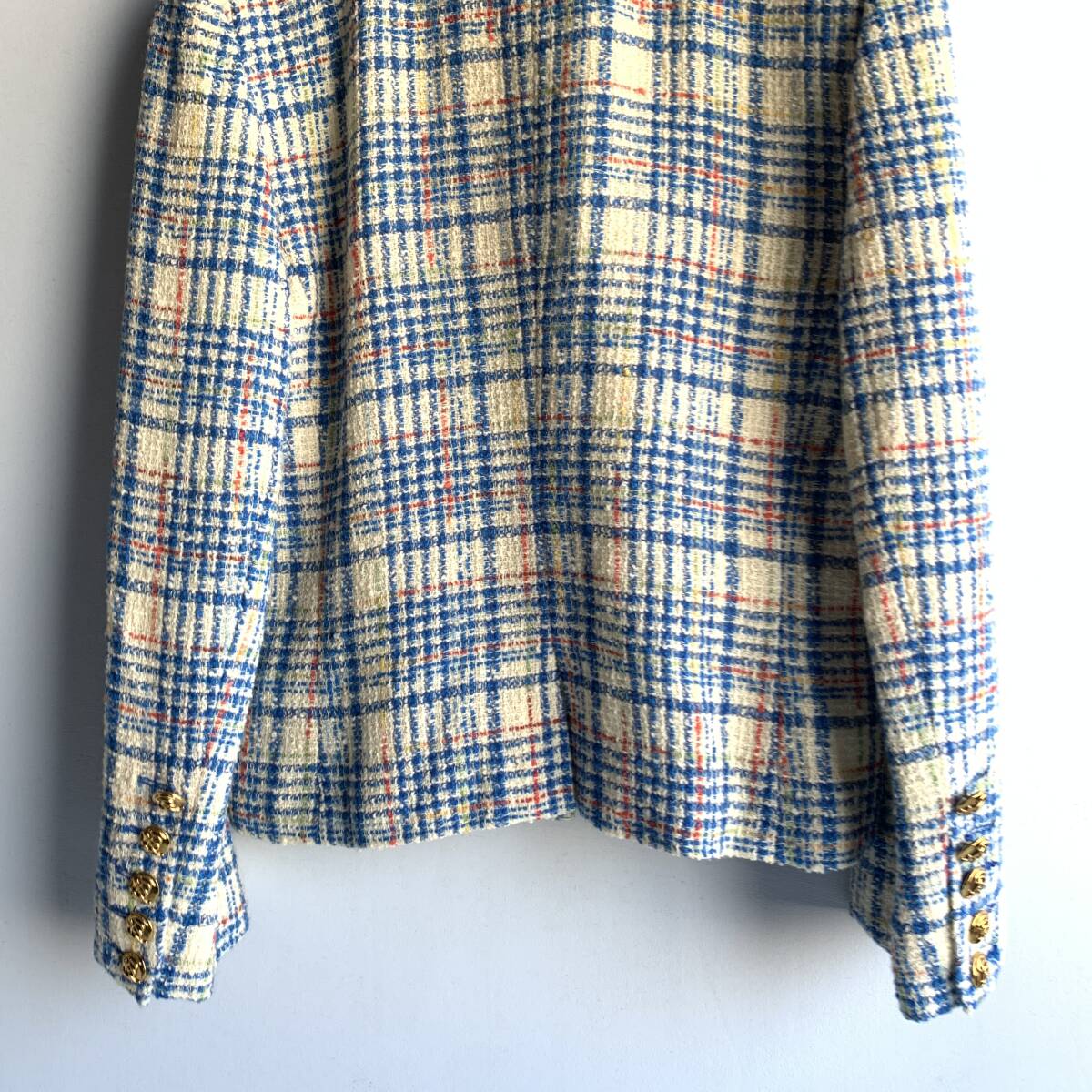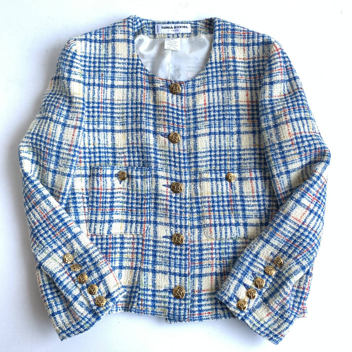 ☆希少 SONIA RYKIEL ソニアリキエル Vintage フランス製 チェック ツイードノーカラージャケット 金ボタン size38【送料一律/同梱可能】I