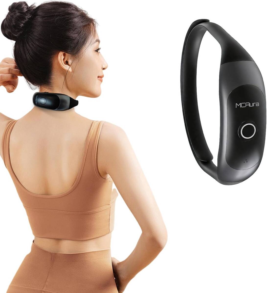 MCAura最新モデルのネックリラクゼーション機器は、専用アプリで直感的に操作可能。人間工学に基づいたデザインと肌にやさしい素材、さらに約85gの超軽量ボディと静音設計で、快適な装着感と持ち運びやすさを両立しました。自宅でも外出先でも、手軽に首元のリフレッシュを楽しめます。EMS刺激と温熱機能を組み合わせ、やさしく包み込まれるような心地よさをお届けします。