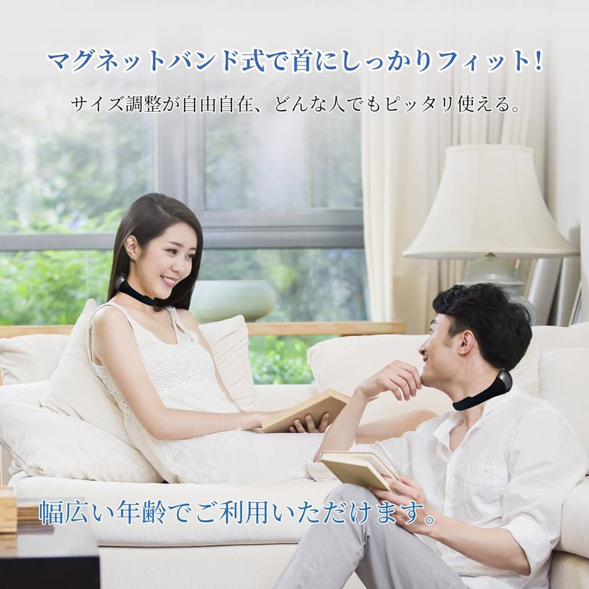 ネックケアはわずか約85g。軽量・コンパクトで持ち運びもらくらく。肌にやさしいシリコン素材を採用し、なめらかな触り心地で長時間の使用でも快適です。 柔軟なフレームとマグネット式構造により、首のサイズや角度に合わせて自然に調整可能。フィット感のあるすべり止め設計で使用中もずれにくく、従来品でよくある締め付け感や不安定さを軽減します。