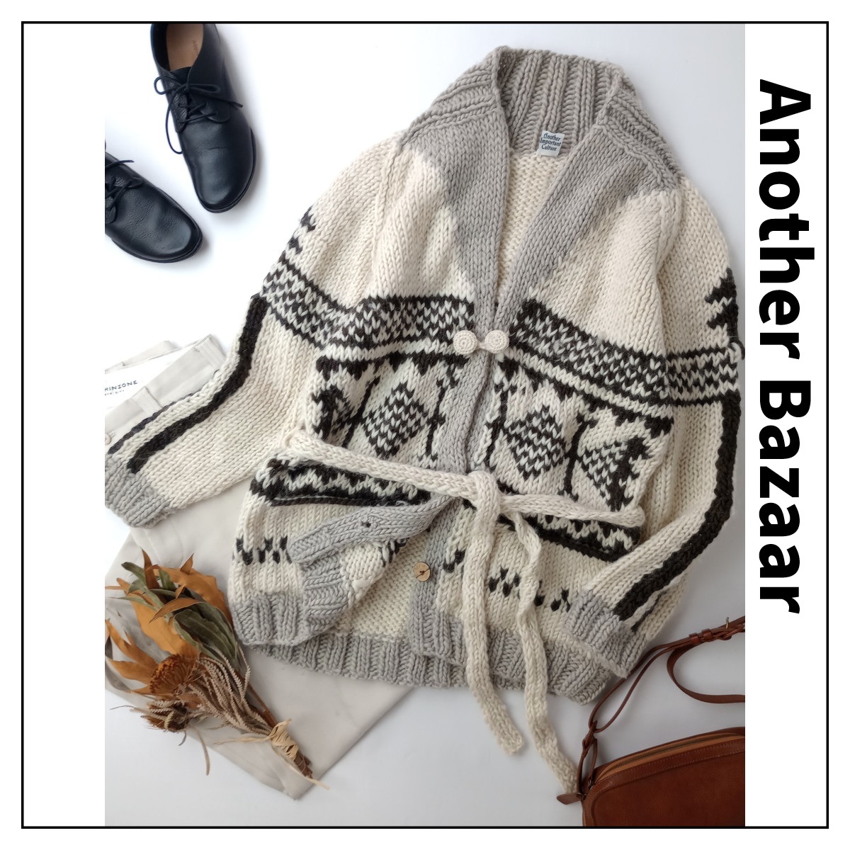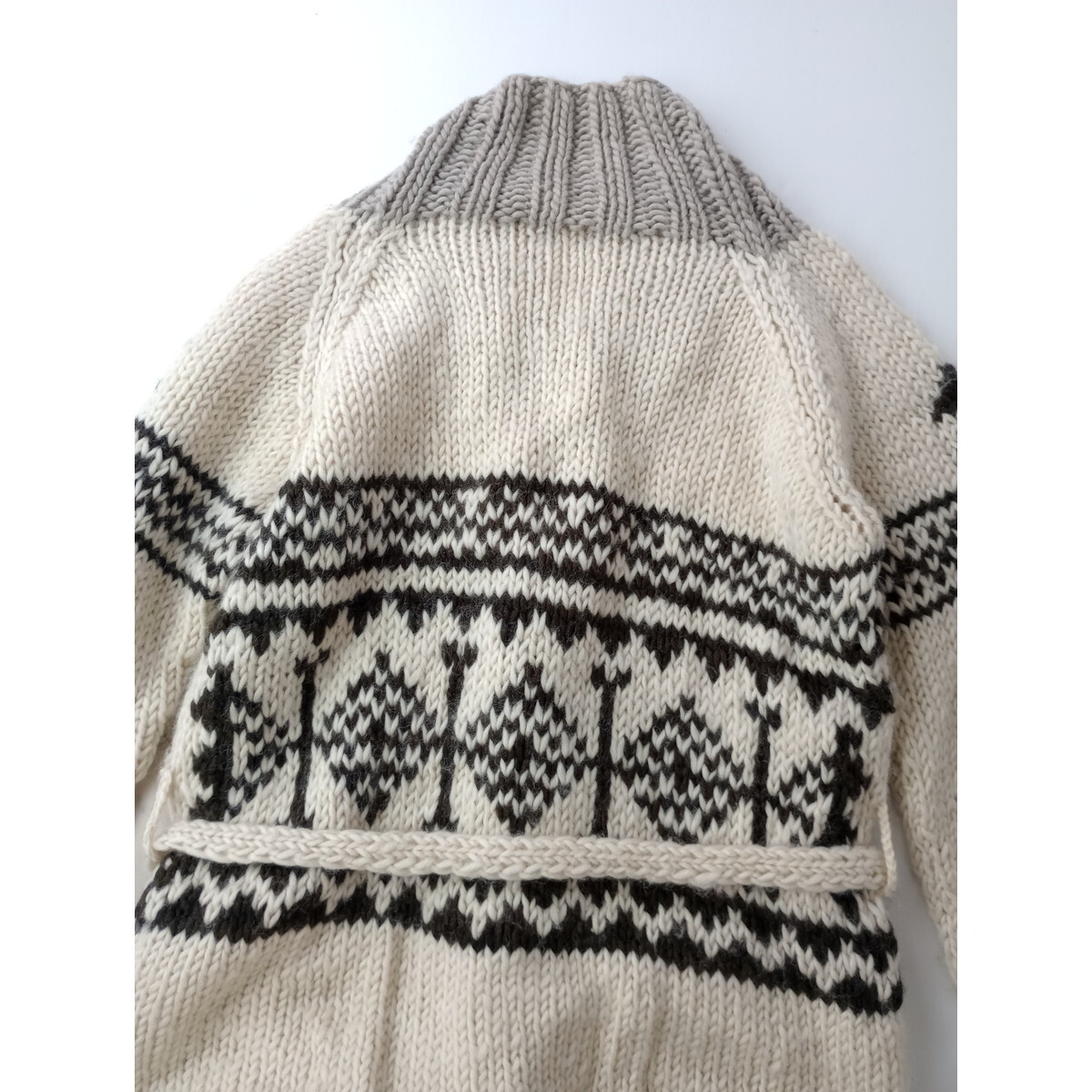 定価32780円 Another Bazaar アナザーバザール「暮らし”彩る”」ウール 毛 100% アズテック柄 カウチン ニット ガウン 手編み(33M+0053)