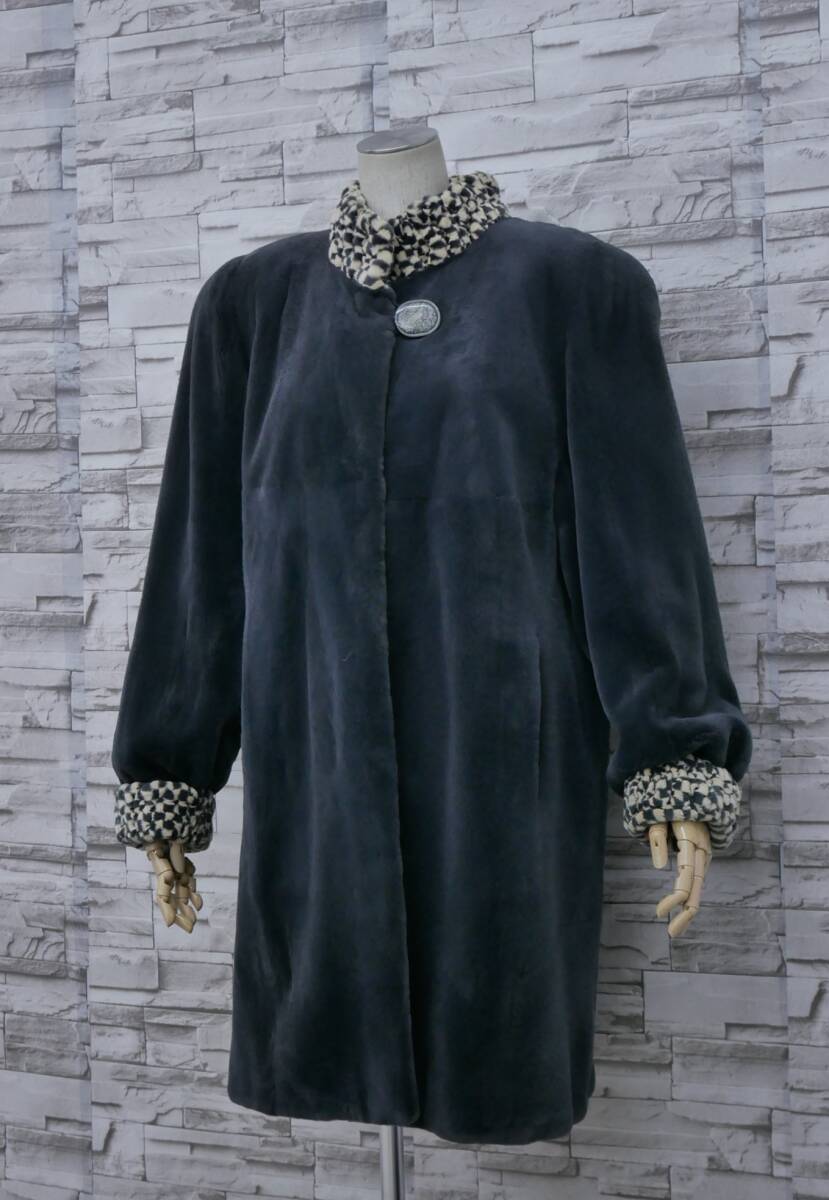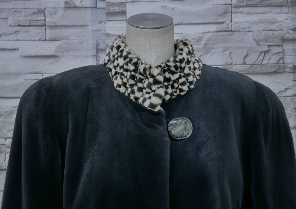 ☆シェアードミンク☆ロングコート☆着丈90cm☆襟・袖デザイン☆袖ダブル襟元ボタン付き☆レアカラー☆レアデザイン☆