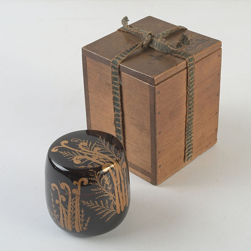 茶道具 黒漆 蕨蒔絵 棗 時代箱 VRFH