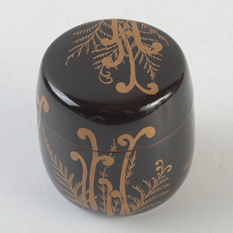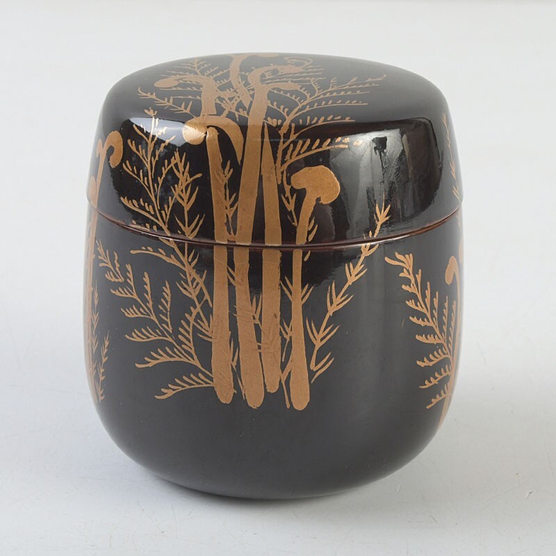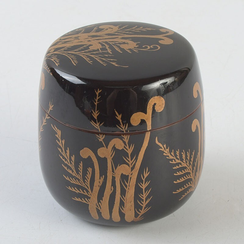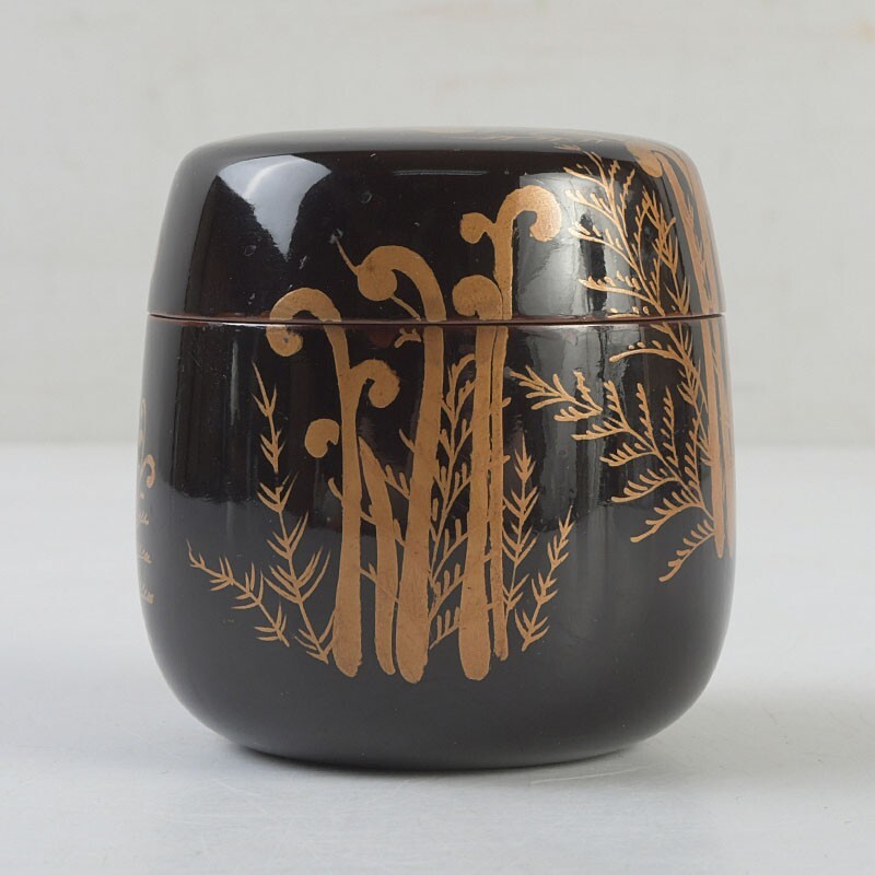 【茶道具 黒漆 蕨蒔絵 棗 時代箱 VRFH】