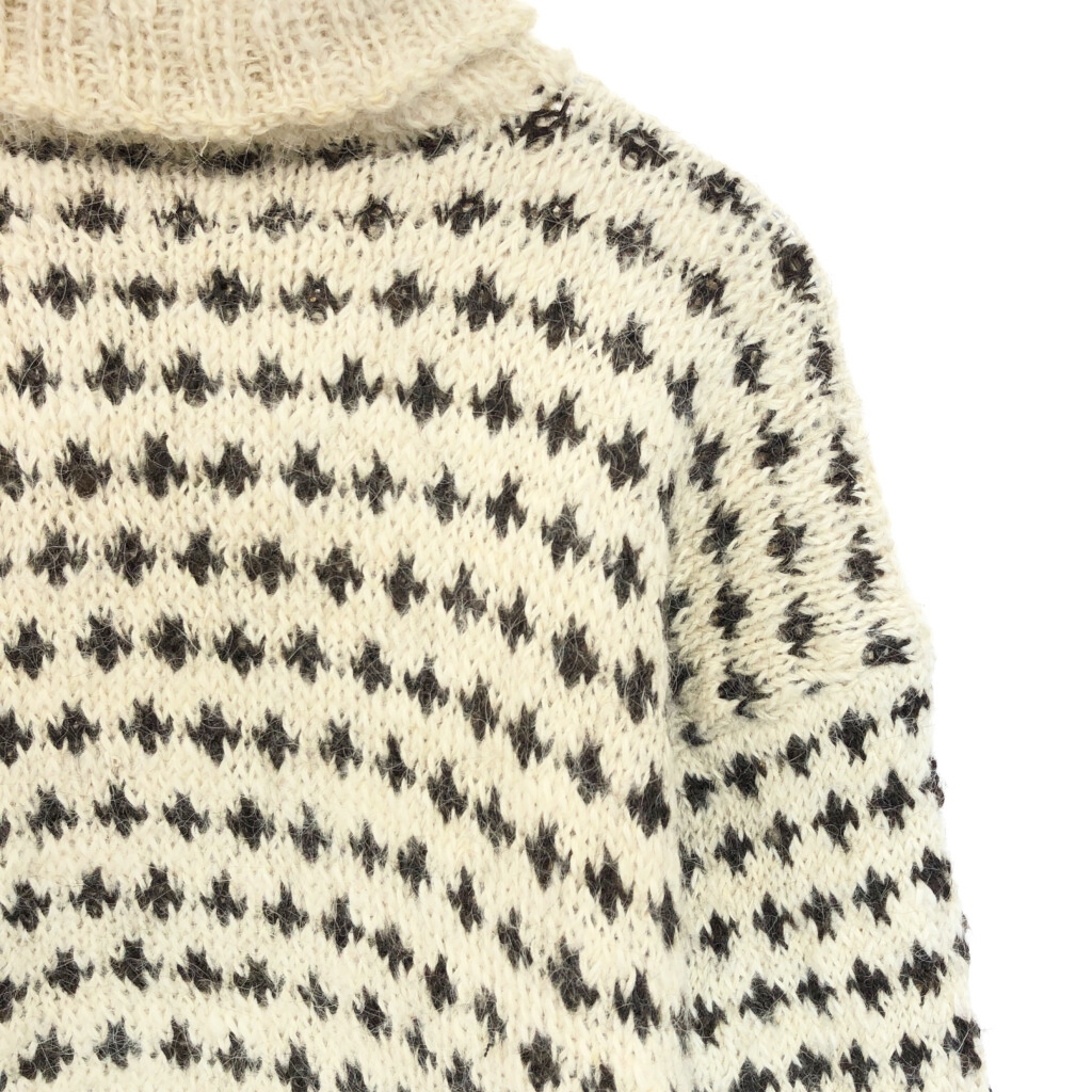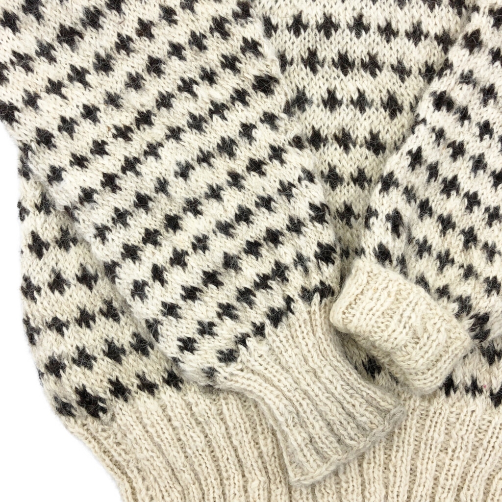 | 【商品管理番号】 V1875 【サイズ】 M相当 【実寸サイズ】 肩幅:約57cm 着丈:約63cm 身幅:約55cm 袖丈:約61cm 【主な素材】 表地 : ウール 【色】 アイボリー 【仕様】 タートルネック バーズアイ 【状態】 汚れ:袖 | |||