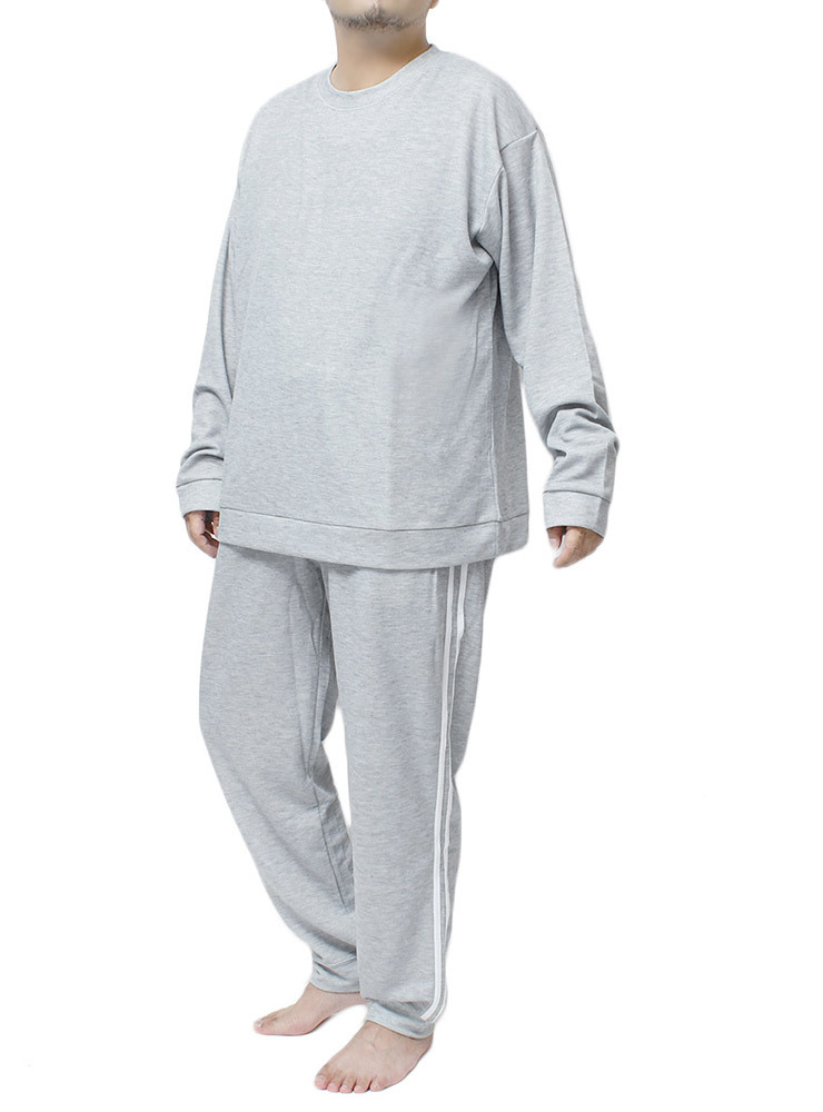 商品名 | 【新品】 L グレー セットアップ メンズ ストレッチ ダンボール素材 薄手 スウェット クルーネック トレーナー イージーパンツ |
