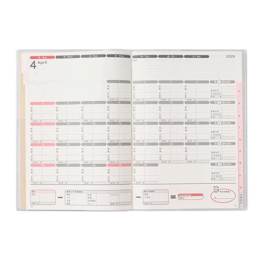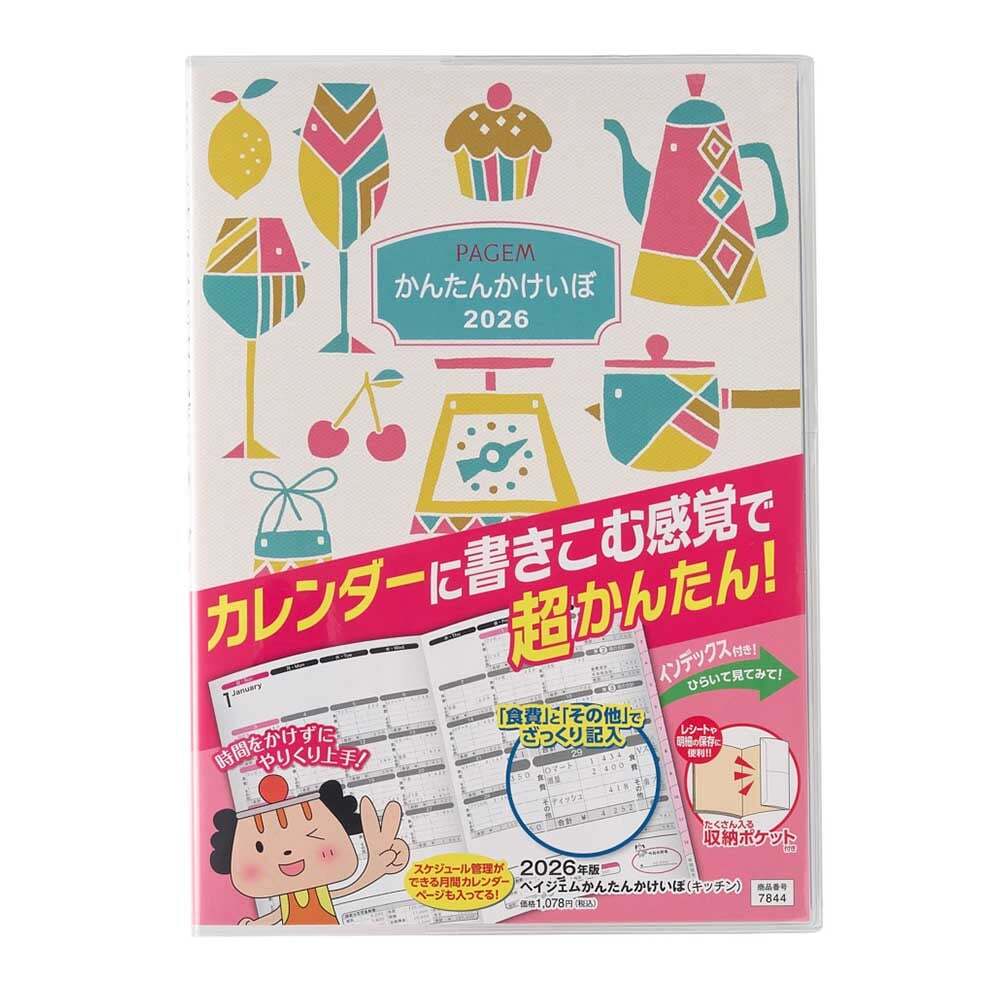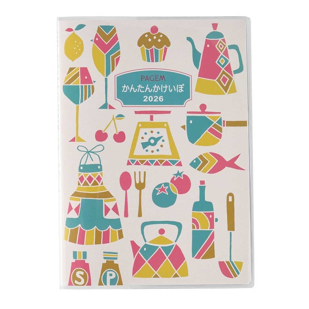 @【即決】▽2026年 ダイアリー▽ ノルティ 家計簿 1月始まり 日曜始まり インデックス付き キッチン柄 収納ポケット付き // 7844