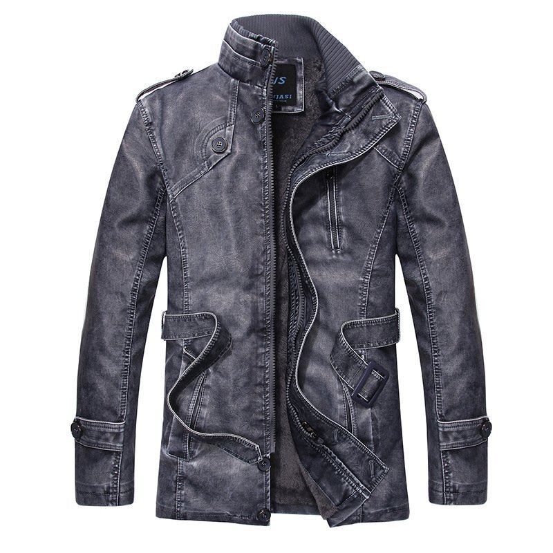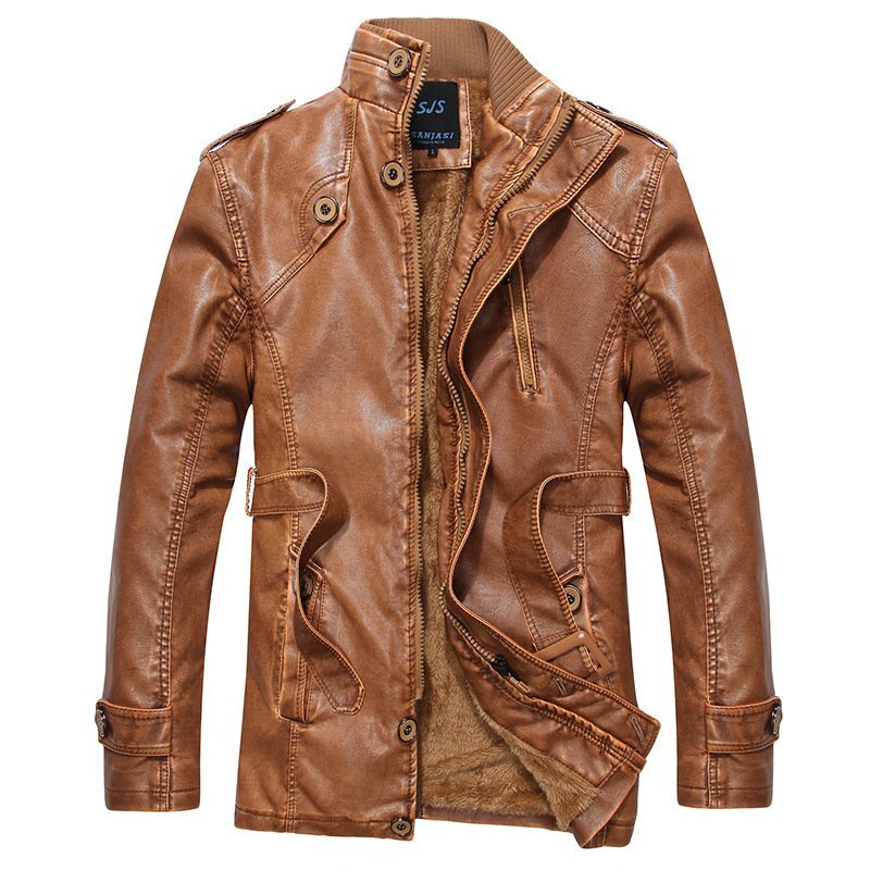 ライダース ジャケット レザージャケット ロング コート 革ジャン メンズ 裏起毛 ベルト付 秋冬 防風防寒 ★4色選択可/L~3XLサイズ