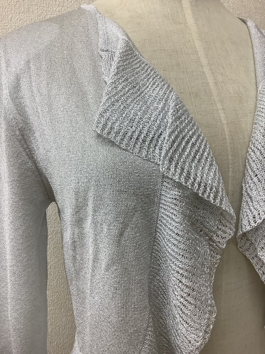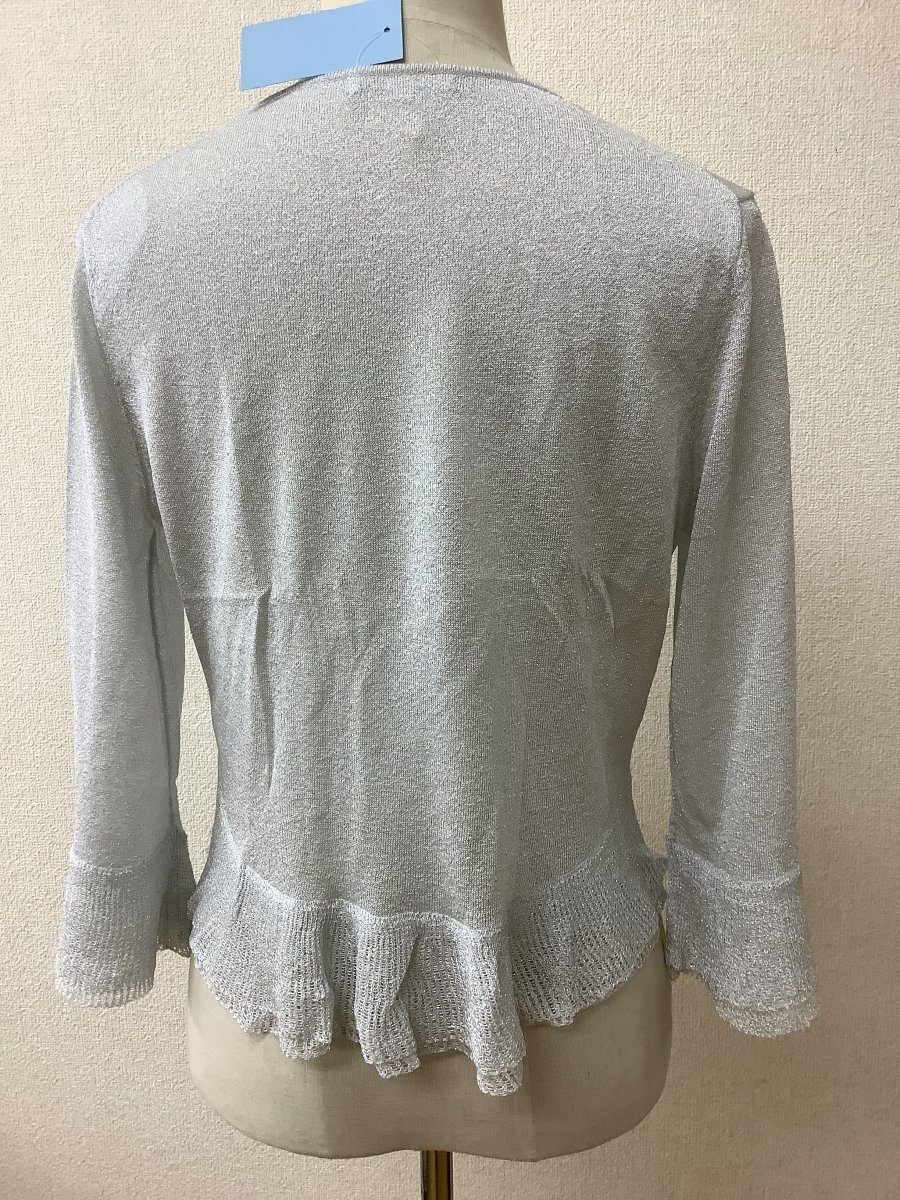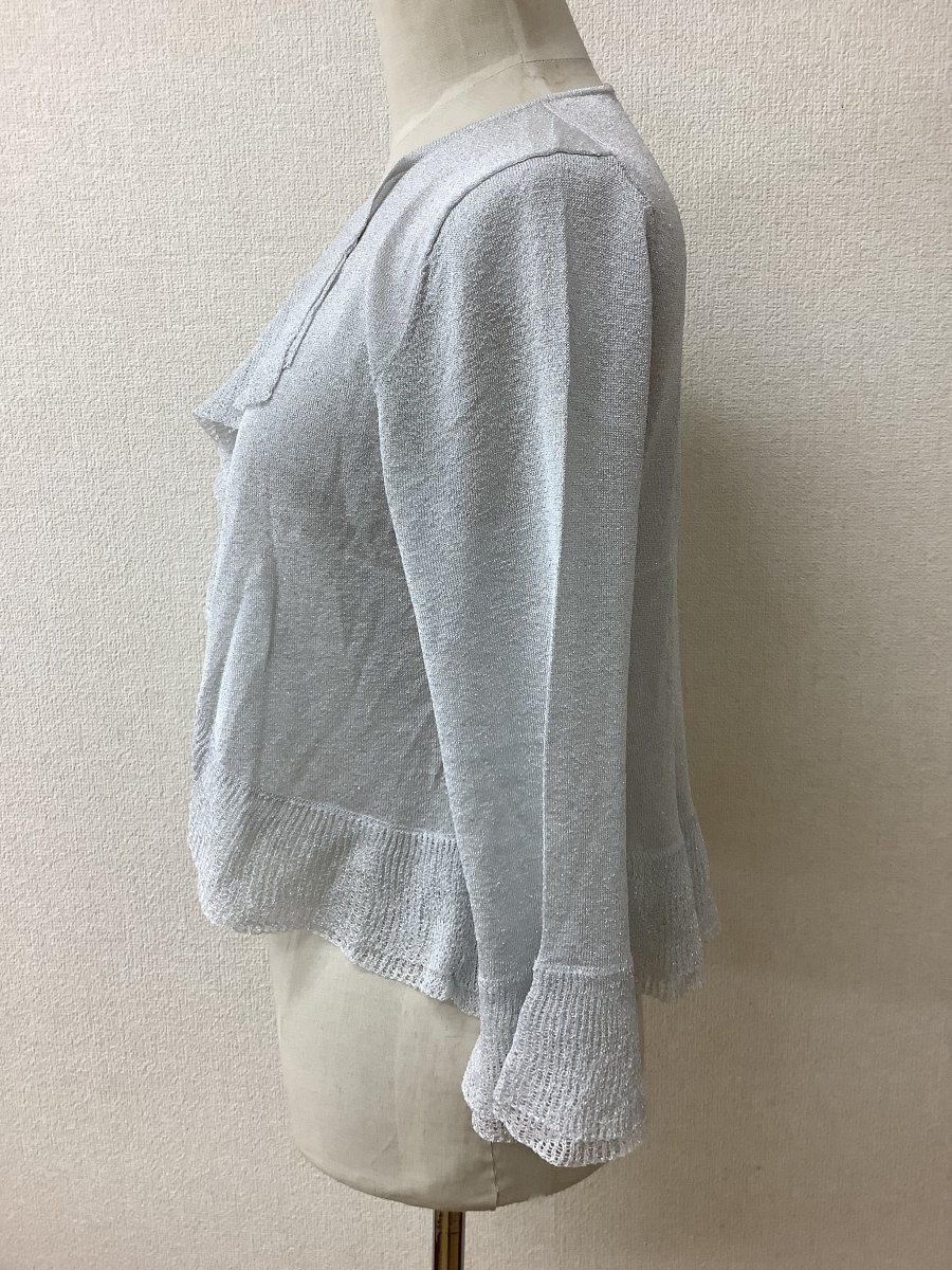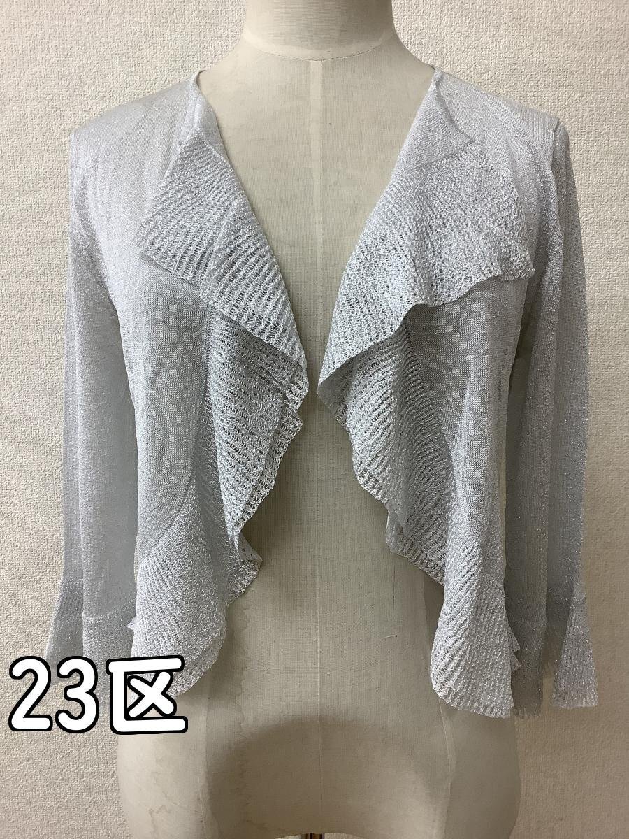 | 23区 ラメ入りシルバー ボレロカーディガン 【表示サイズ】 38 【平置き実寸】 脇下身幅 41cmほど 着丈 47cmほど 肩幅 33cmほど そで丈 41cmほど 【季節感】春夏向け 【状態その他】 目立った傷や汚れなし ・肩パット無し 当店管理番号:10^141920 |