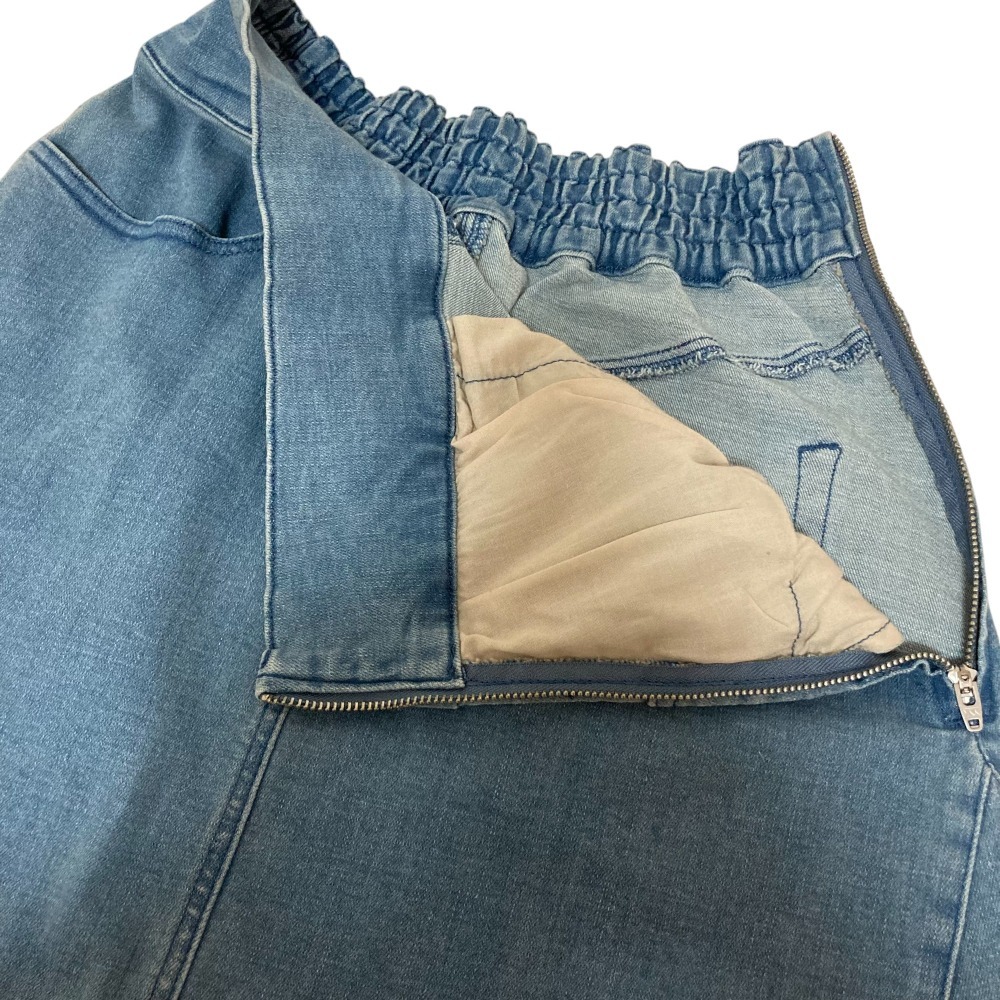 美品 three dots スリードッツ デニム ボリュームフレアスカート DN3002Y サイズXS インディゴ