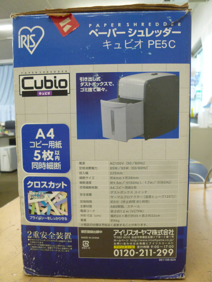数あるオークションの中からアクセス頂き誠に有難うございます。 :*:★ 落札前に必ず「発送詳細」「注意事項」ご覧ください★:*: 商 品:ペーパーシュレッダー キュビオ メーカー:アイリスオーヤマ 型 番: PE5C 中古の商品になります。 動作は問題ありませんでした。 全体的に使用感はありキズ汚れはございます。 裁断刃の所に裁断された紙が残っています。 付属品は画像にある物が全てになります。画像に無いものは付属しませんので必ずご確認下さい。 現状品になります。 出品直前に、通電および動作確認しました。 簡易的な動作の為、全機能を確認、保証するものではありません。 落札後はノークレーム・ノーリターンで、到着日にきちんと 受取連絡ができる方のみお願いします。 出来ない場合は悪い評価がつきますので、よくご確認の上入札をお願いします。 現状品になりますのでいかなる場合もキャンセル・返品はご対応が出来ませんので入札前にご確認ください。 ◆商品の状態、付属品等は画像にてご確認しご判断下さい◆ 発送方法、商品の状態など、ご理解ご納得の上、ご入札頂ますようお願いいたします。 検品時、発送時に商品の確認は念入りにしておりますが見落としもある場合もございます。 あくまで新品のお品ではなく中古の商品にはなりますのでご理解下さい。 ※上記は、入荷時の動作状態となります。 経年品の為、お届け時に動作しない可能性も御座います。 動作の保証は致しかねますので、その点ご理解の上、ご検討お願い致します。 ノークレームノーリターンでお願いします。 ■自身で使用していた商品ではなく仕入れの商品になりますので購入時期、使用(保管)期間等は分かりません。 ■付属品は画像にある物が全てになります。すべては個人的な主観のもとで検品等をしています、状態(欠損)、部品等(欠品)の有無などは画像でご判断をお願い致します。 ■現状品としての出品となりますので、返品、交換はお受けできかねますので予めご理解の程よろしくお願い致します。 ■付属品に関しましてご不明な点がございましたら事前にお問い合わせ下さい。 ■出品時に簡単に動作確認はしておりますが短時間での確認になります。長時間での使用確認はしておりませんので予めご了承下さい。 (中古の商品になりますので完全に動作する保証はございません) 未使用品の場合は動作の確認をしてありませんので予めご了承下さい。 ■フィルター、バッテリー等、消耗品に関しましては現状となり残量、使用期間等は分かりませんので予めご了承下さい。 ■仕入れの商品で見た目では判断できない劣化、長期保管による独特な匂い等がある場合もございます。完全なる新品商品ではありませんので気になる場合は入札をお控えください。 ◆厳重な検品を行っておりますので基本すり替え防止の為、返品交換等はご遠慮ください。ノークレームノーリターンでお願い致します。 商品の状態などよくご確認頂きまして入札お願い致します。 ☆★中古の商品になりますので元箱がない商品はリサイクル資材となります。別の箱での発送になりますので届きましたら商品の確認をお願い致します★☆ ◆収納ケース、収納バックがある商品に関しましては詳しく検品はしておりませんのでキズ汚れ、破損、錆、割れ、破れなどがある場合もございますがおまけの商品としてお考え下さい。 |