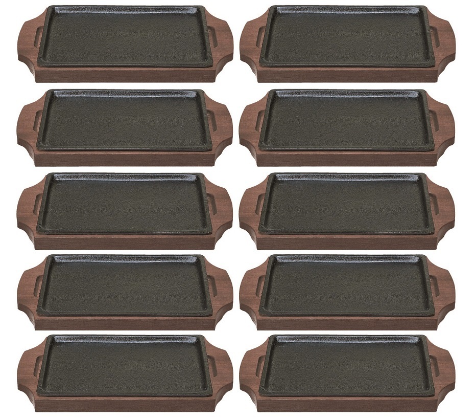 ☆ステーキ皿長方型(小)10個(皿約180X127mm)木台付日本製新品